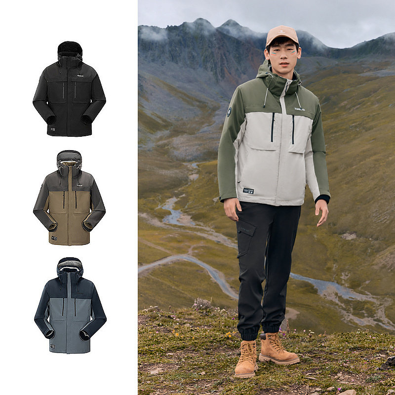 探路者冲锋衣男户外徒步登山服三合一可拆卸冬季运动防风抓绒外套