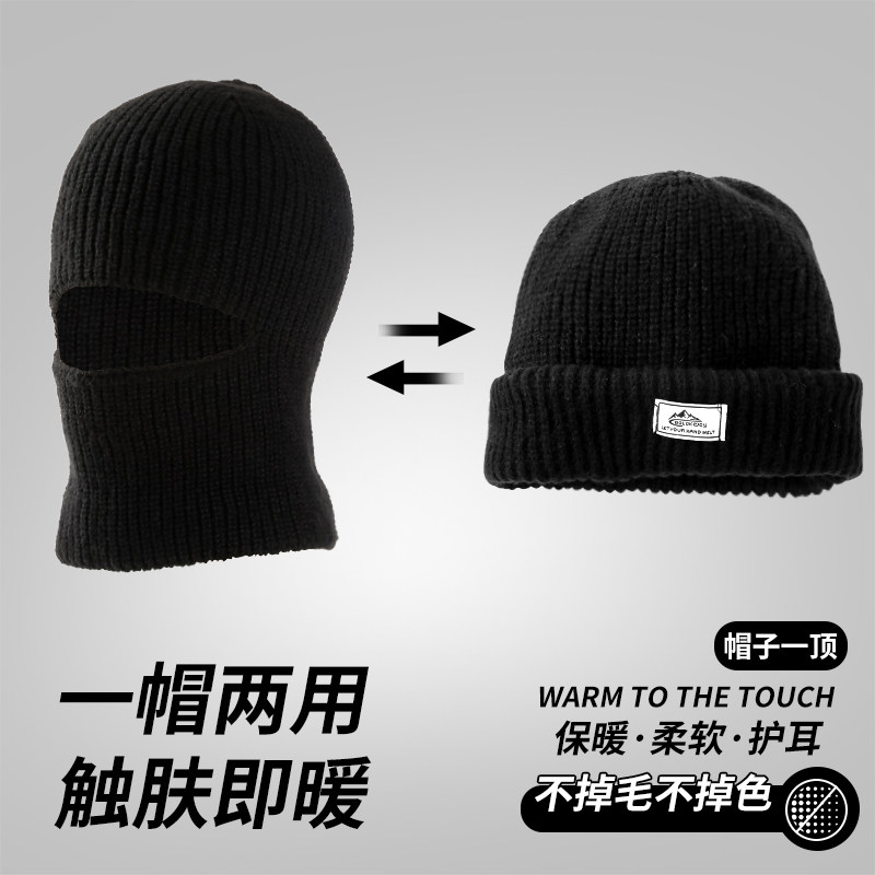 巴拉克拉法帽日系复古黑色保暖毛线帽子男士头套针织帽面罩冷帽