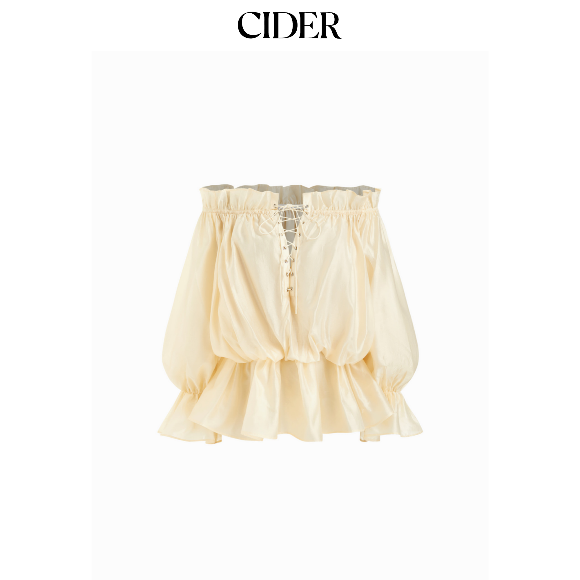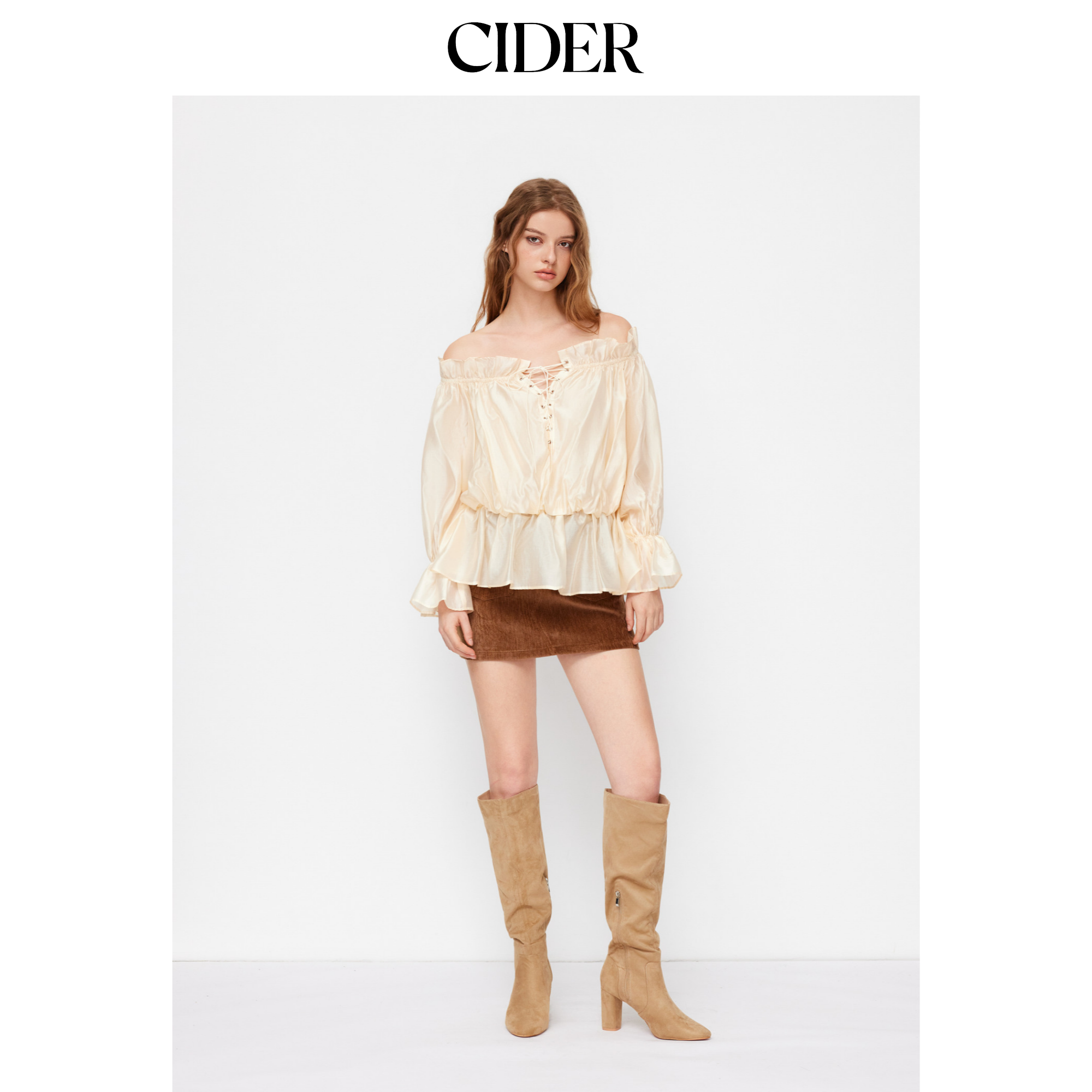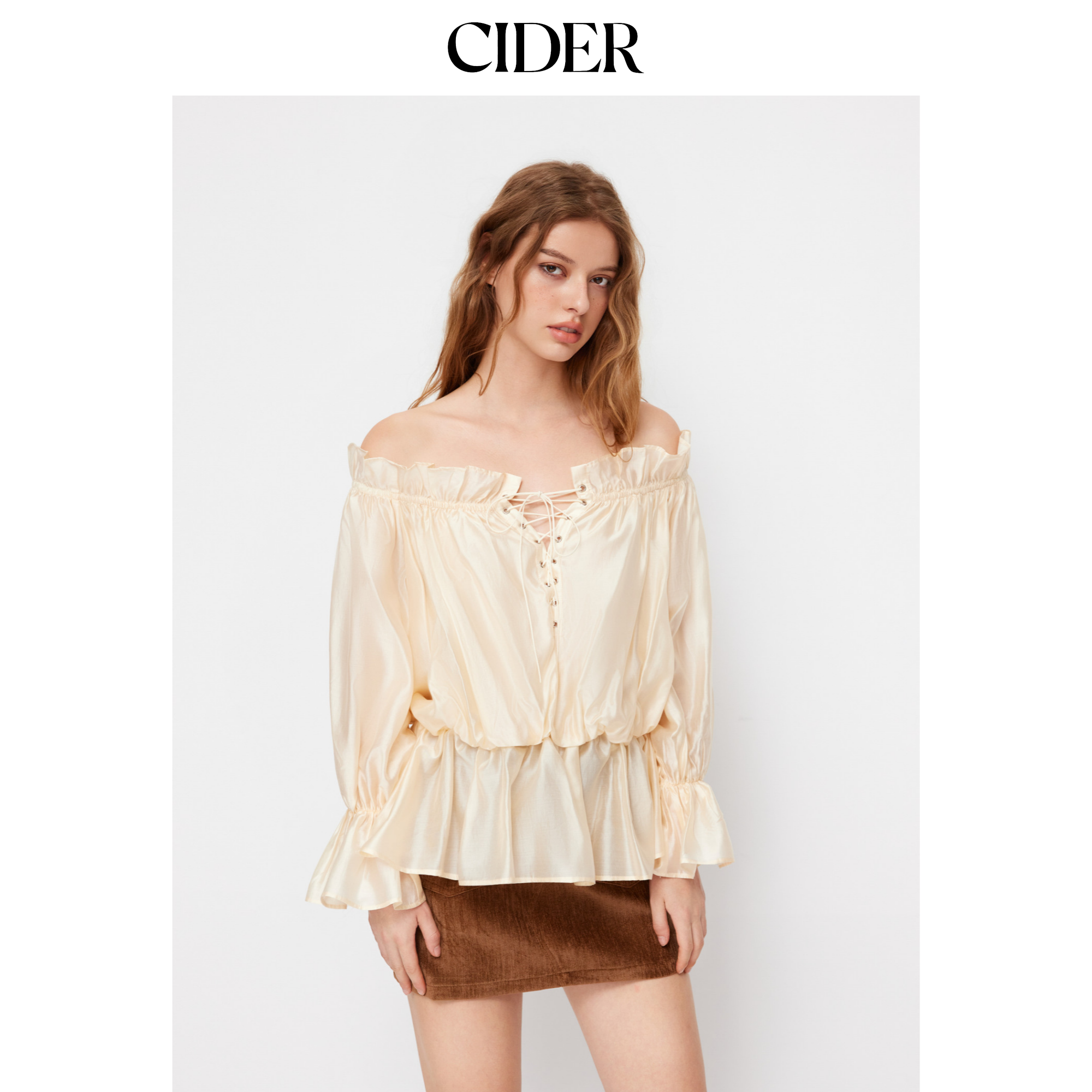 CIDER 露肩抽绳系带荷叶边摆喇叭袖上衣女装114901068