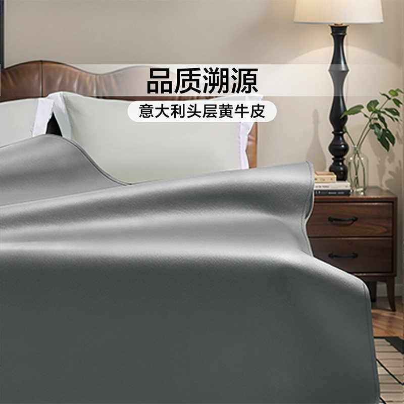 富安娜意大利进口牛皮席头层黄牛皮凉席轻奢简约牛皮软席A类清凉