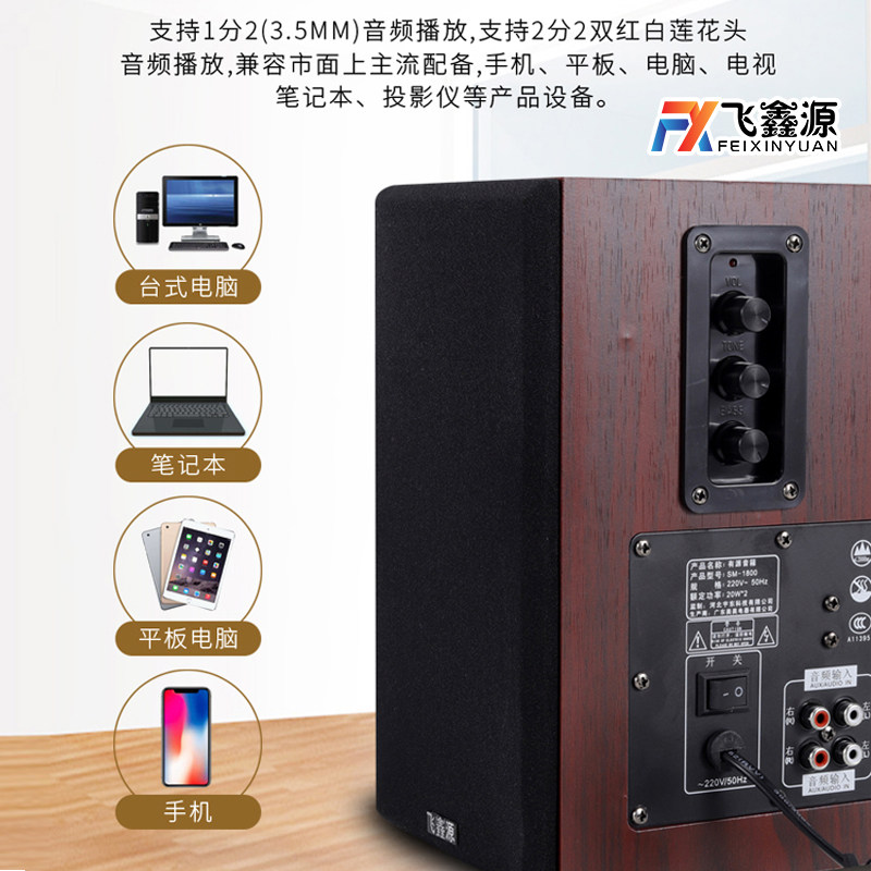 多媒体教室一体机台式电脑音箱书架木质有源2.0壁挂手机蓝牙