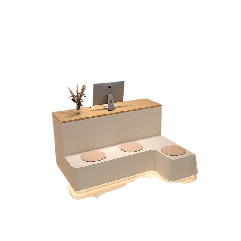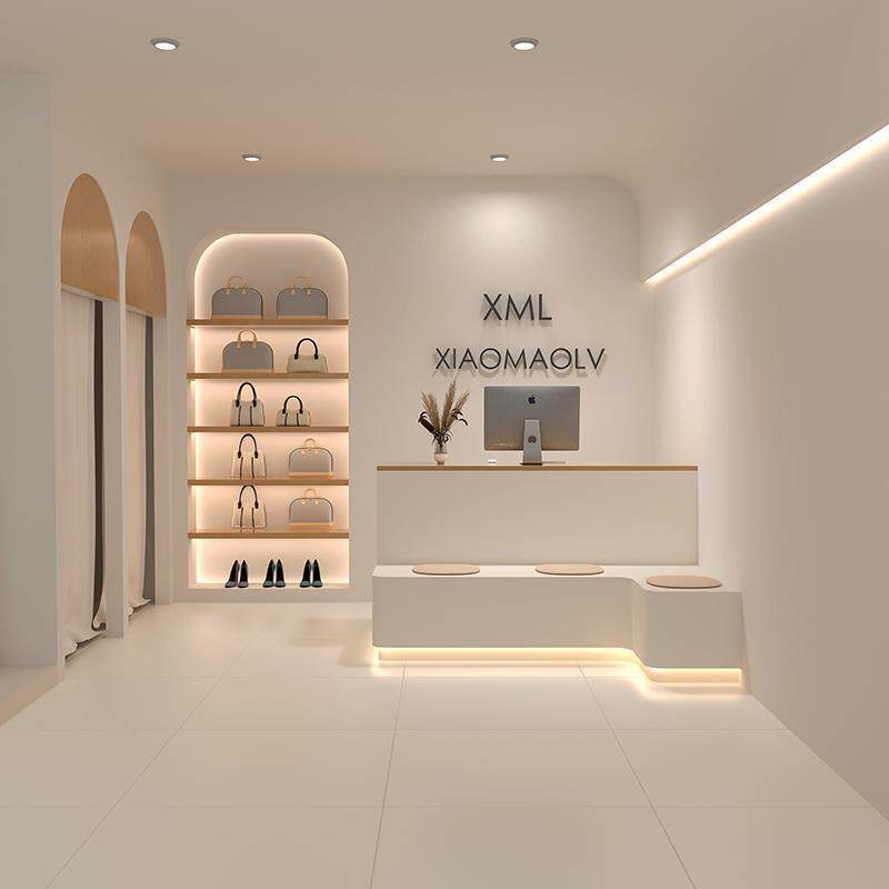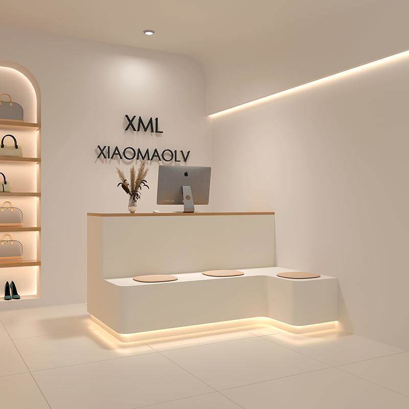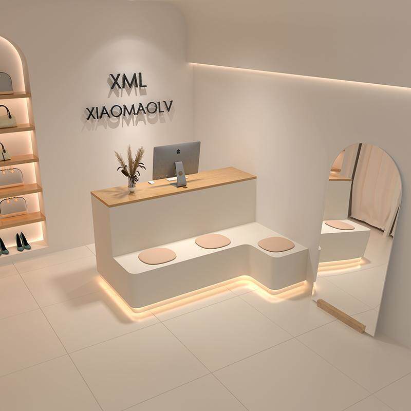 奶油风吧台收银台带休息凳柜台服装店铺小型童装店女装店简约吧台