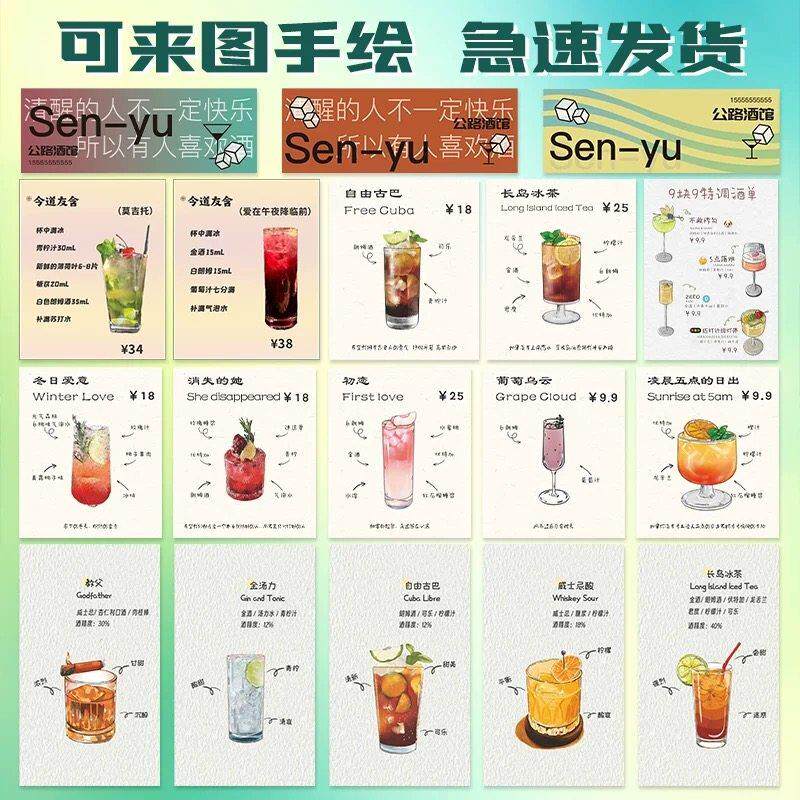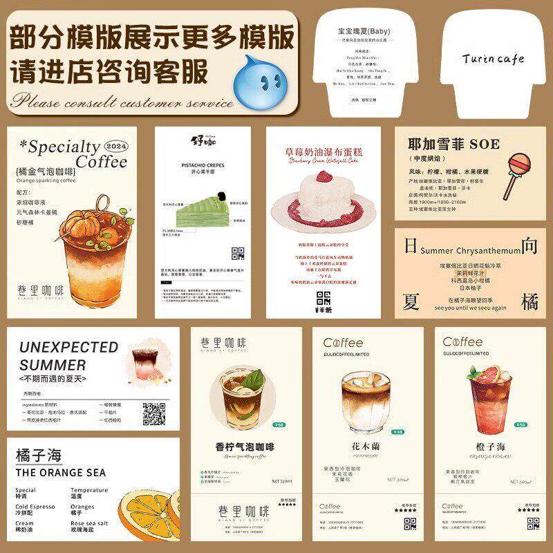 咖啡卡片定制特调手冲豆风味介绍卡印刷饮甜品外送鸡尾酒明信片设