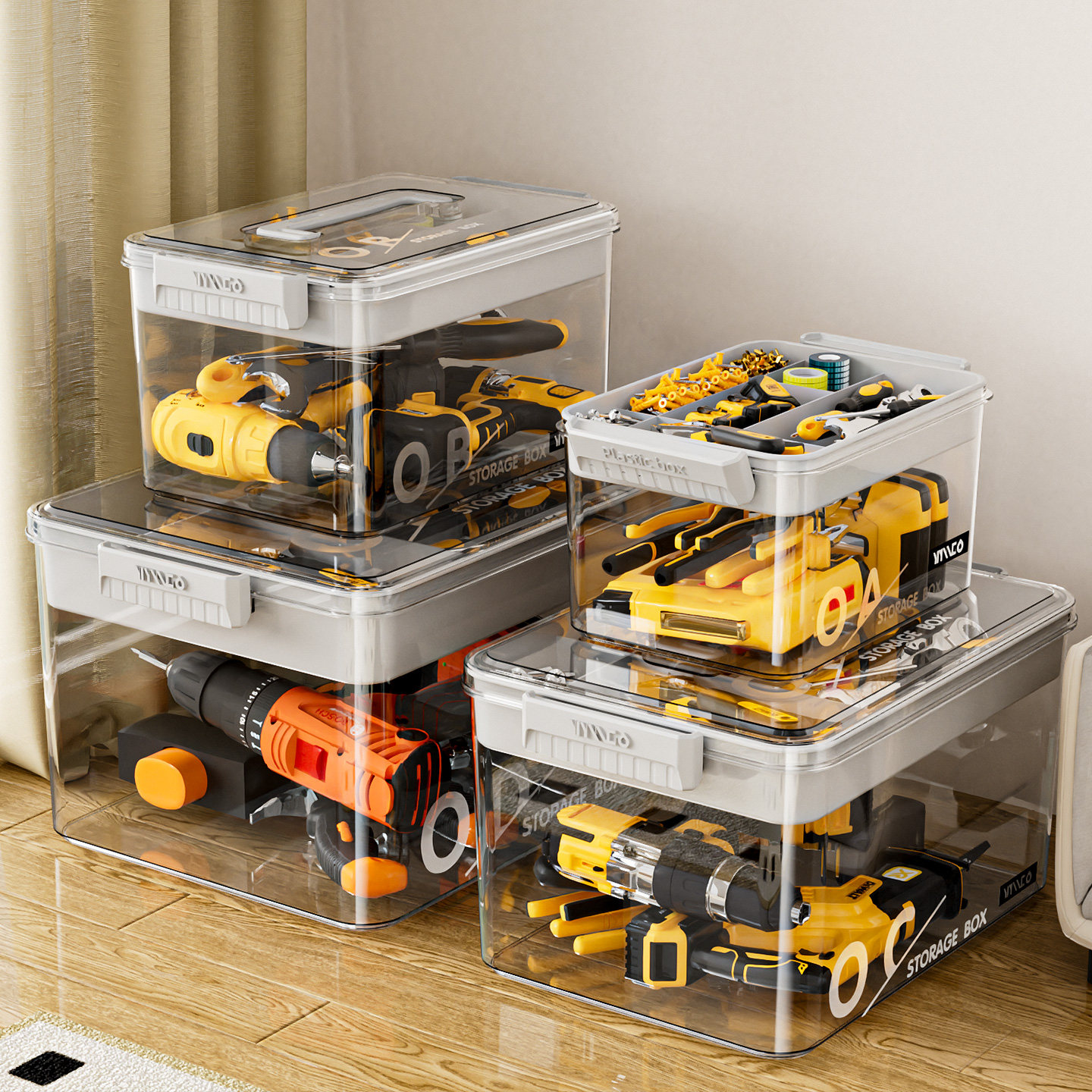 工具箱家用透明收纳盒多功能零件杂物五金整理盒双层大容量收纳箱