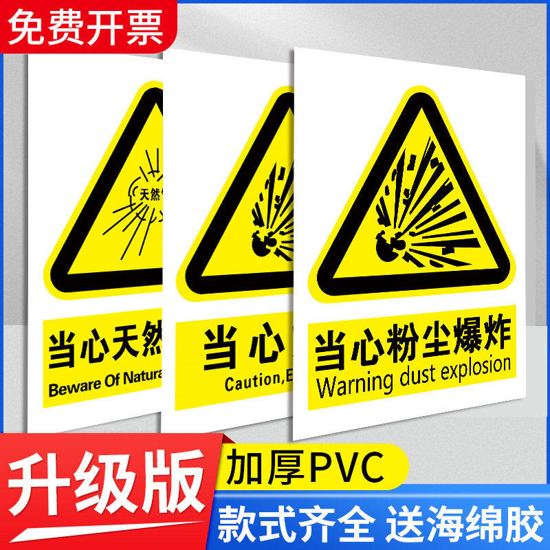 当心粉尘爆炸标识牌易燃易爆标识禁止吸烟当心触电警示牌定制必须佩戴防尘口罩告示牌注意防尘噪声有害提示牌