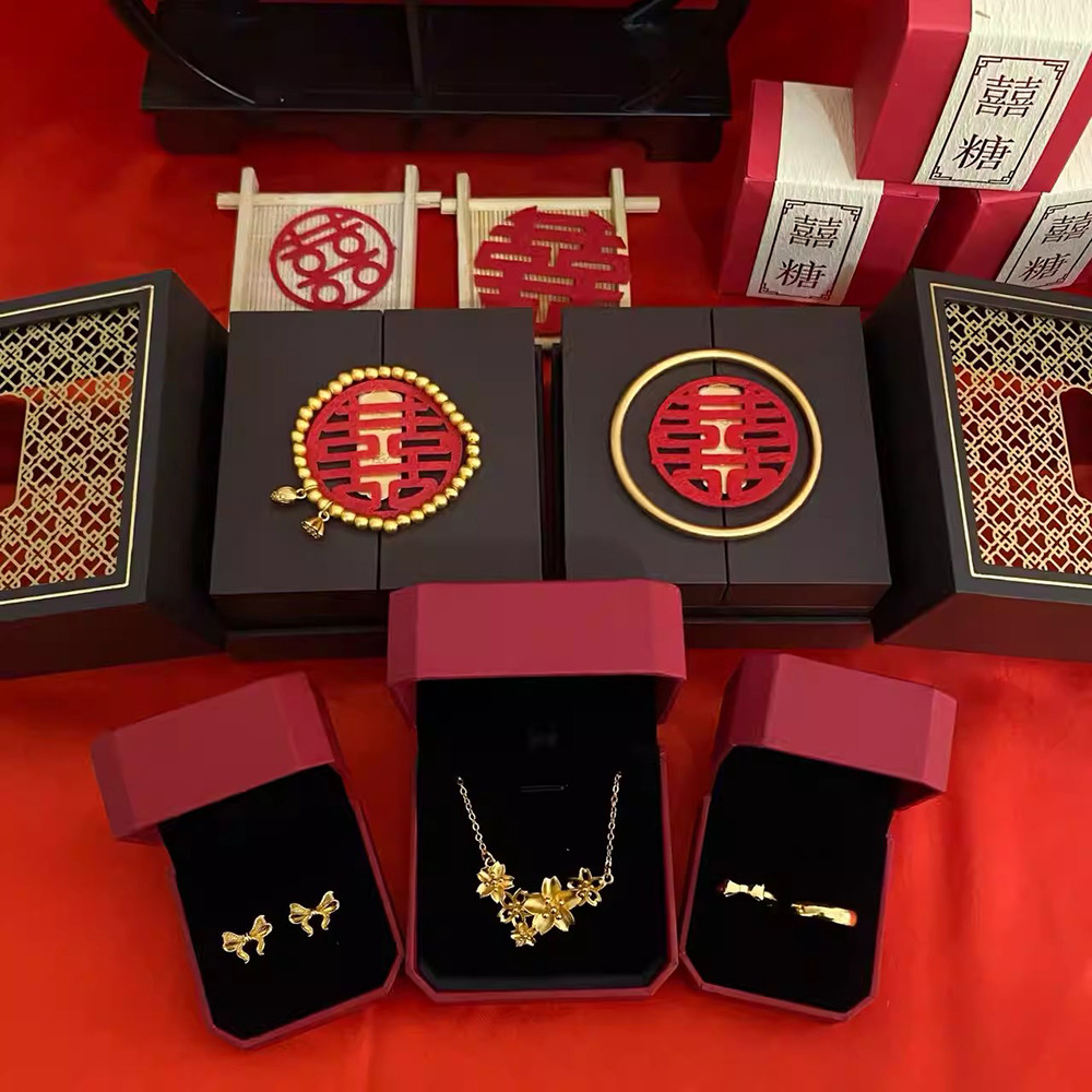 结婚摆件订婚仿真仿黄金假五金首饰一套饰品高级小众锁骨链项链