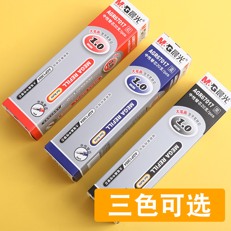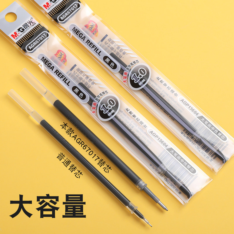 晨光文具大笔画1.0mm子弹头中性签字水笔芯替芯黑色AGR67017粗管大容量加粗中性笔芯签字笔芯批发免邮