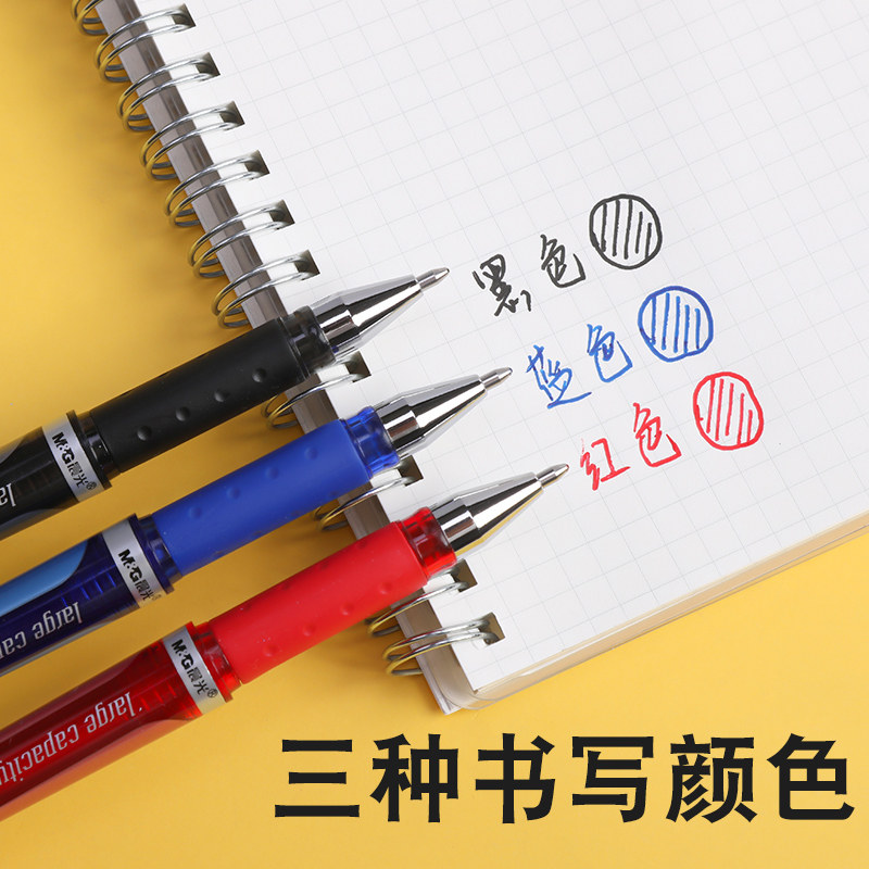 晨光中性笔按动式黑色水笔红色蓝色速干顺滑大容量学生用碳素笔