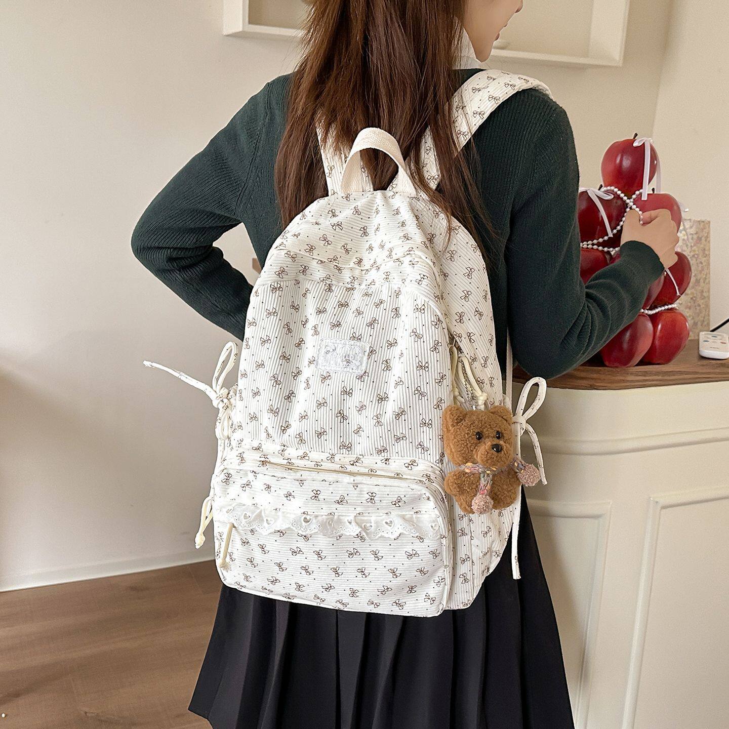 2026新款蝴蝶结波点蕾丝少女心双肩包高颜值潮流可爱百搭书包