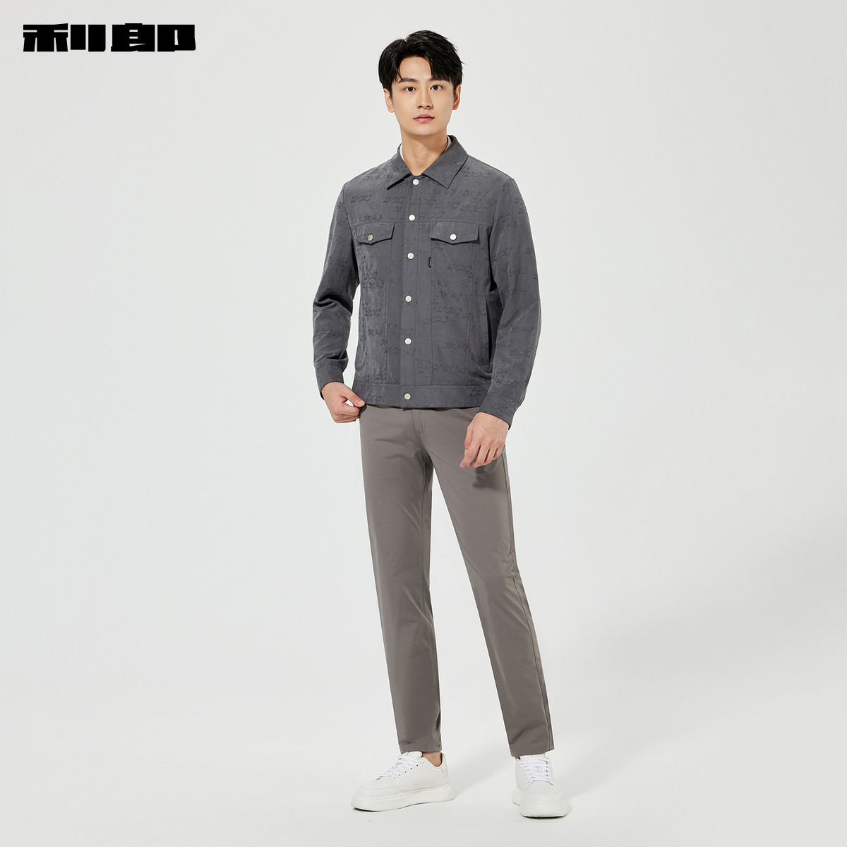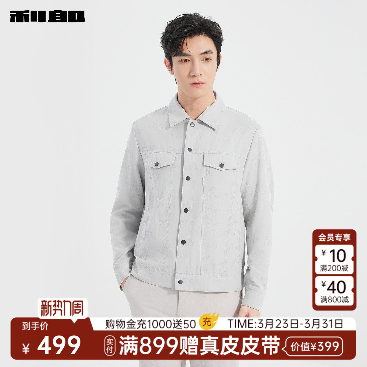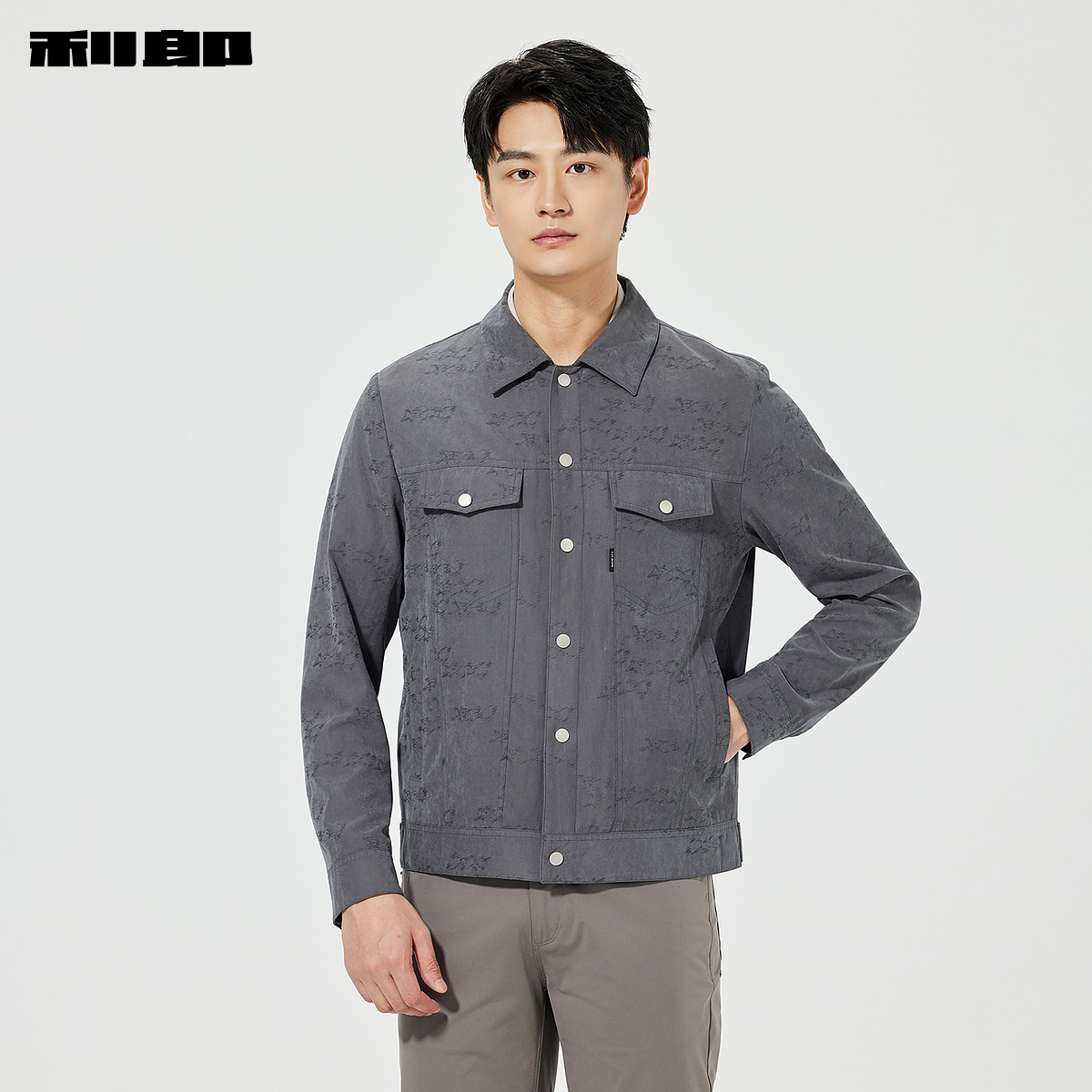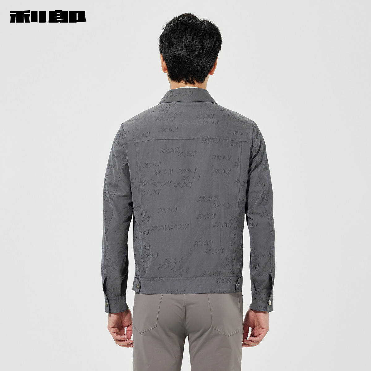 利郎官方 提花肌理短款夹克男士春季新款休闲男装时尚翻领外套男