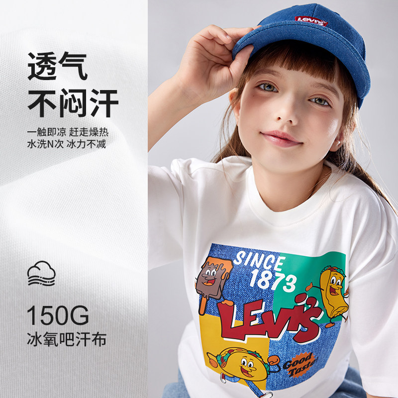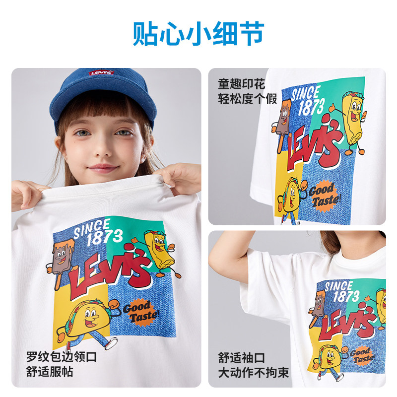 【汉堡图案】Levis李维斯儿童男童短袖T恤2025夏季透气运动童装女