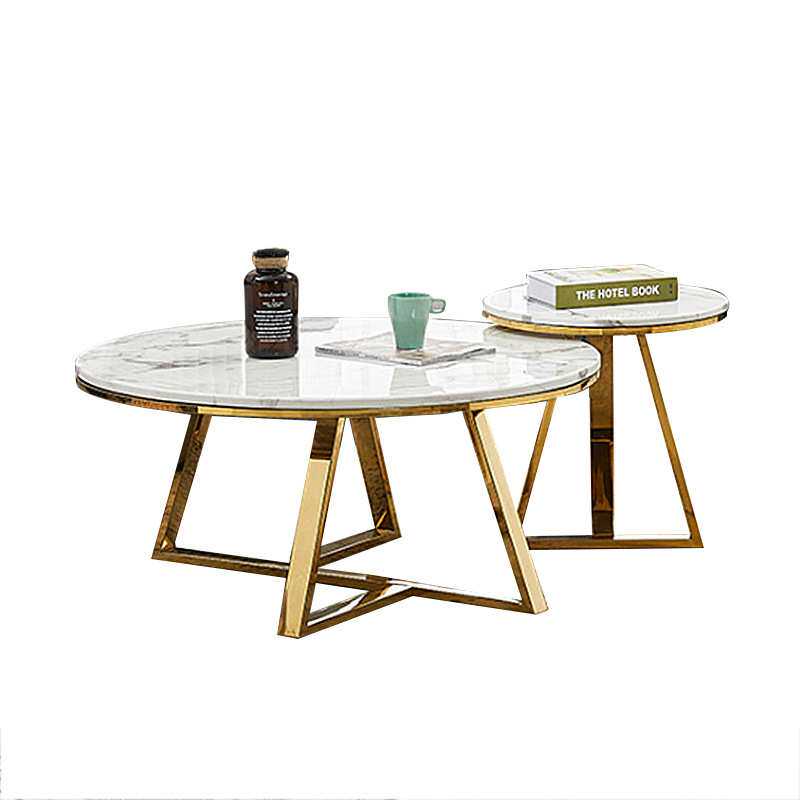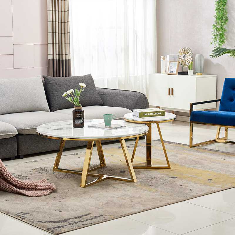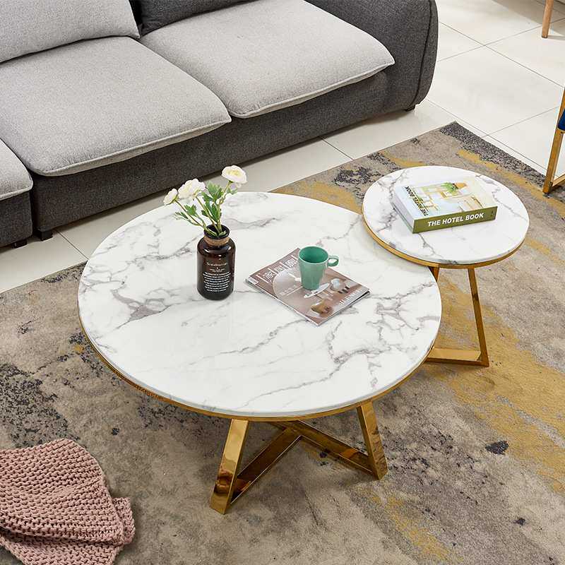 北欧简约大理石茶几现代客厅圆形创意家具边几轻奢不锈钢茶几桌
