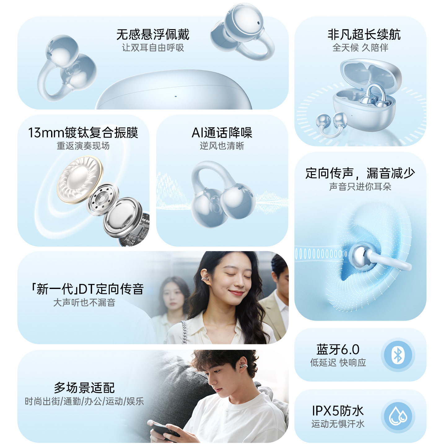 弱水时砂openfeel夹耳式蓝牙耳机挂耳HIFi运动跑步开放式专用耳机