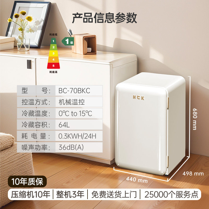 HCK哈士奇70BKC化妆品冰箱家用白色复古小型护肤面膜美容美妆网红