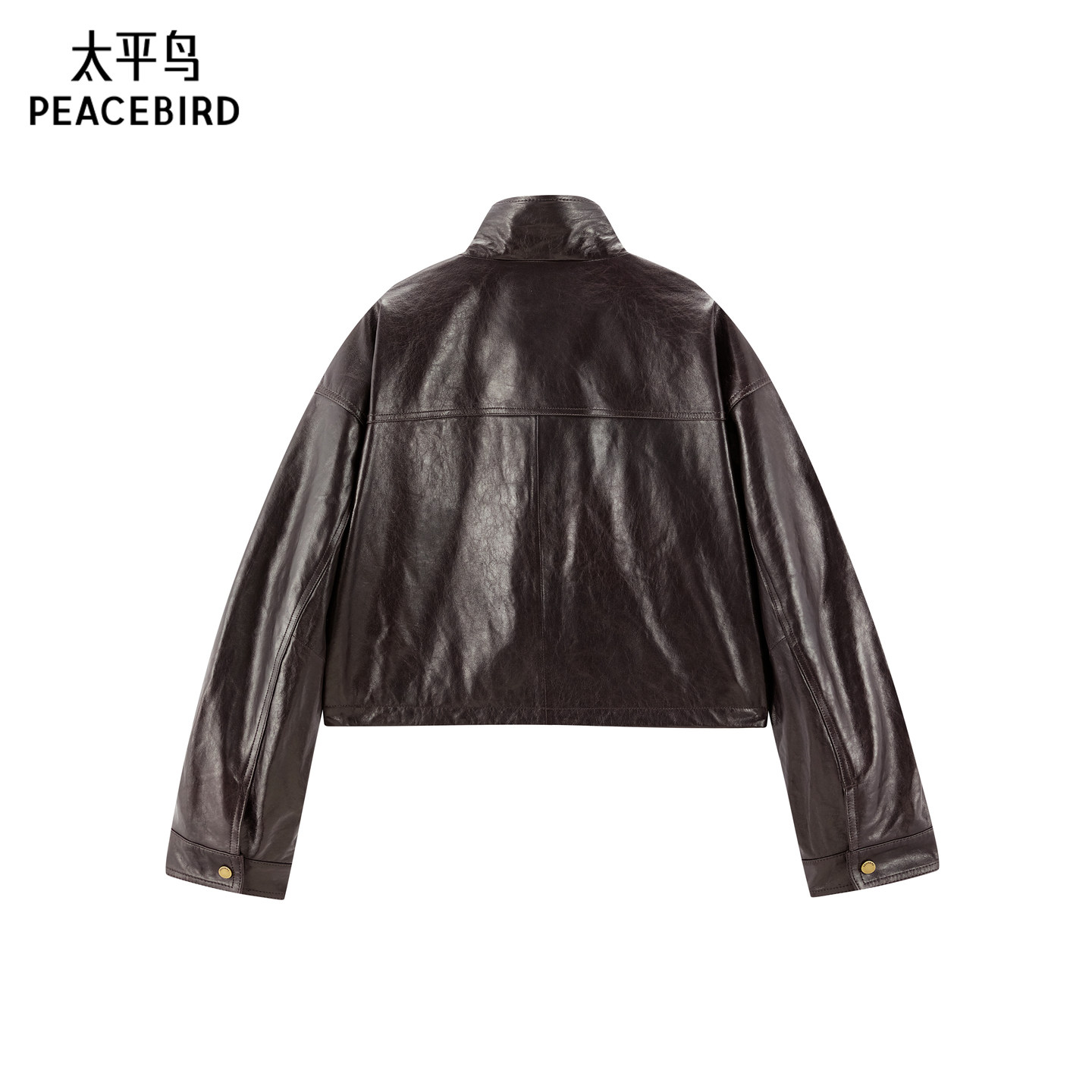 【商场同款】太平鸟油蜡真皮皮衣经典短款廓形皮衣外套A1BDF422D*