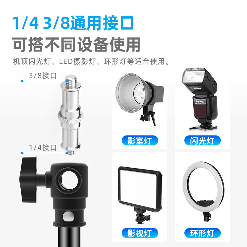 铝合金材质 可伸缩调节 1/4 3/8通用接口
