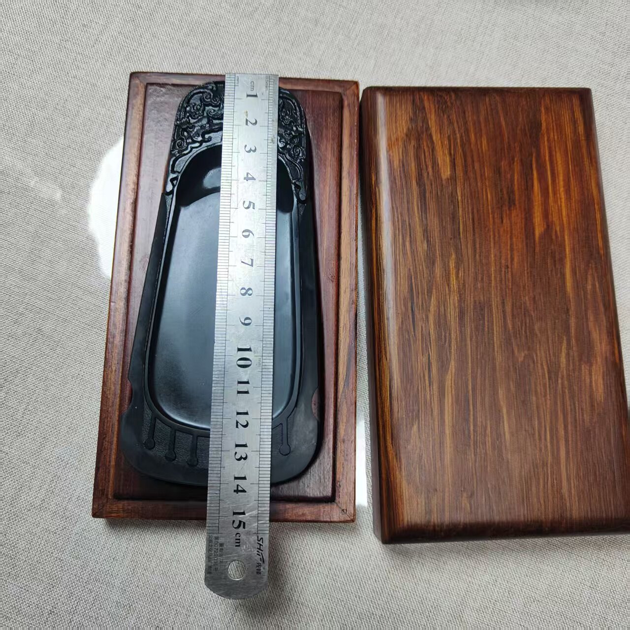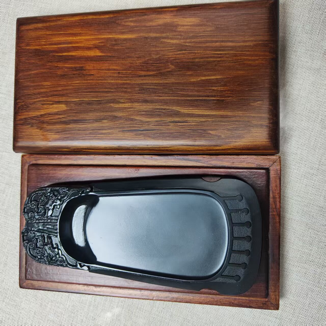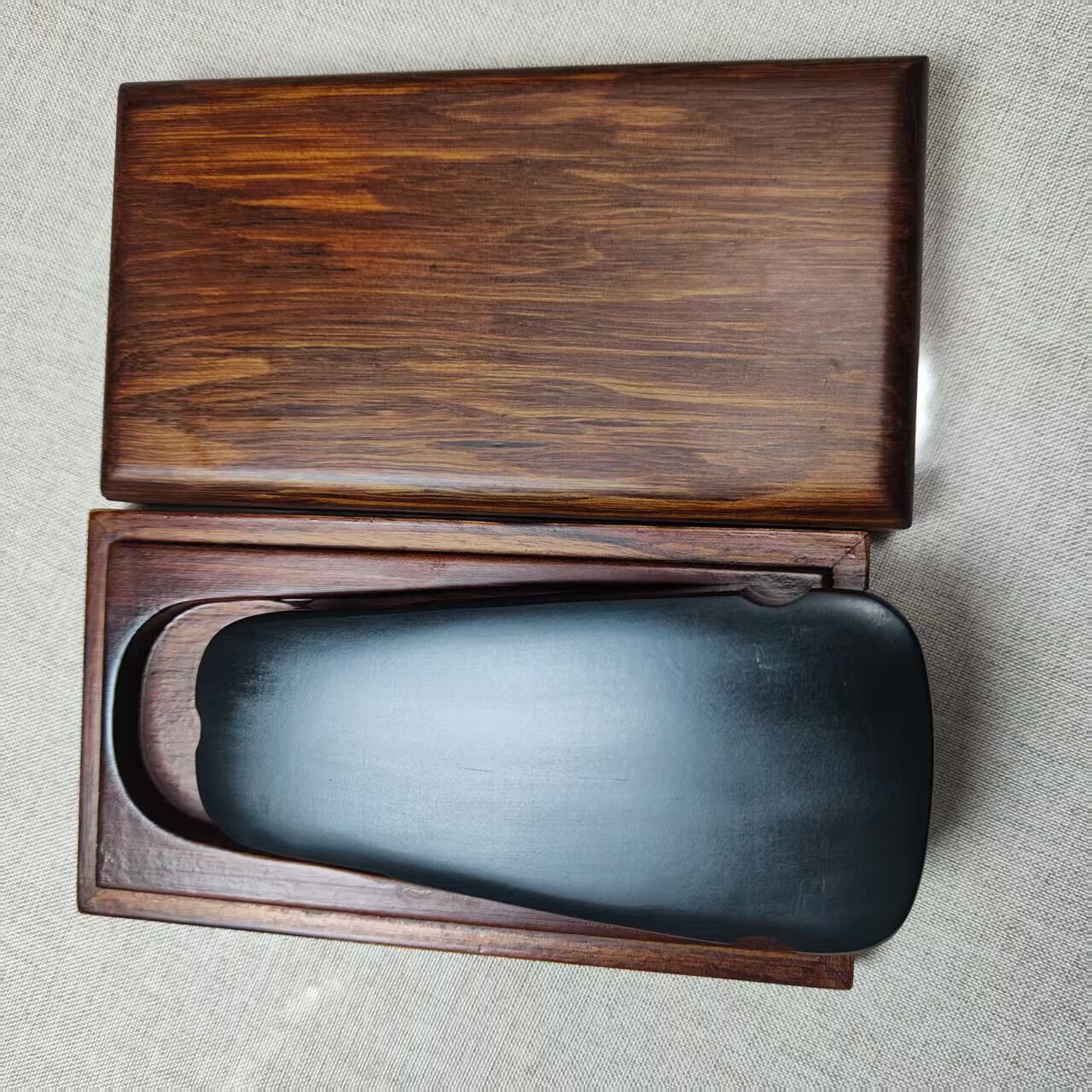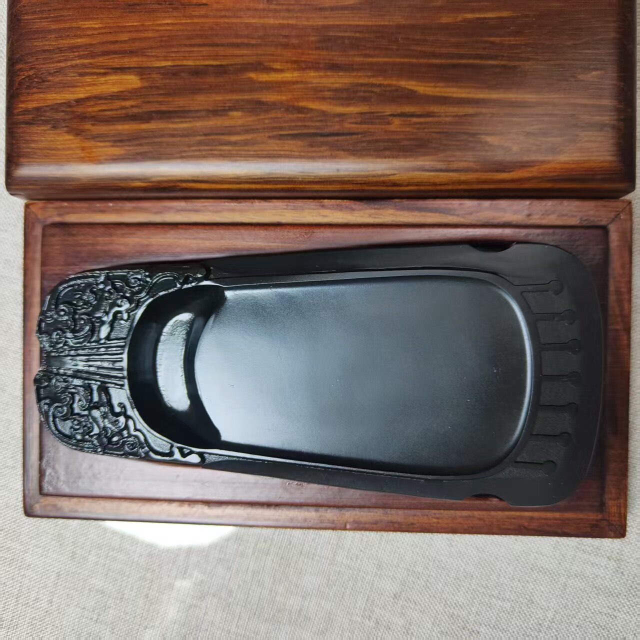 文房四宝笔墨纸砚自产自销歙砚台古琴形状素池有木盒做镇纸送墨条