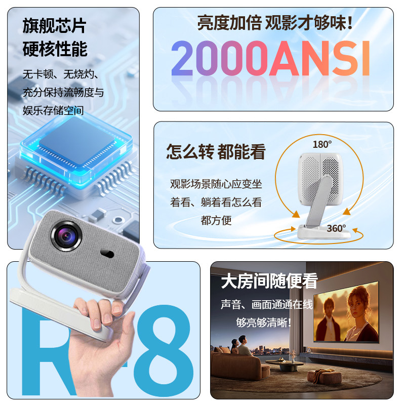 PNPY投影仪R8家用超高清双频WIFI自动对焦云台一体家庭影院投影仪