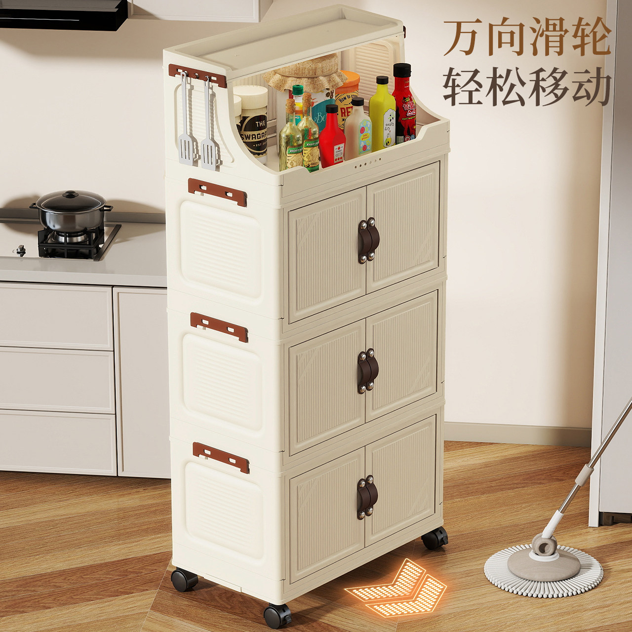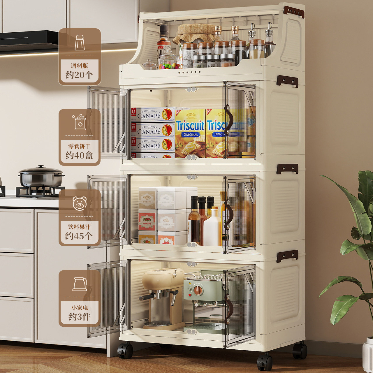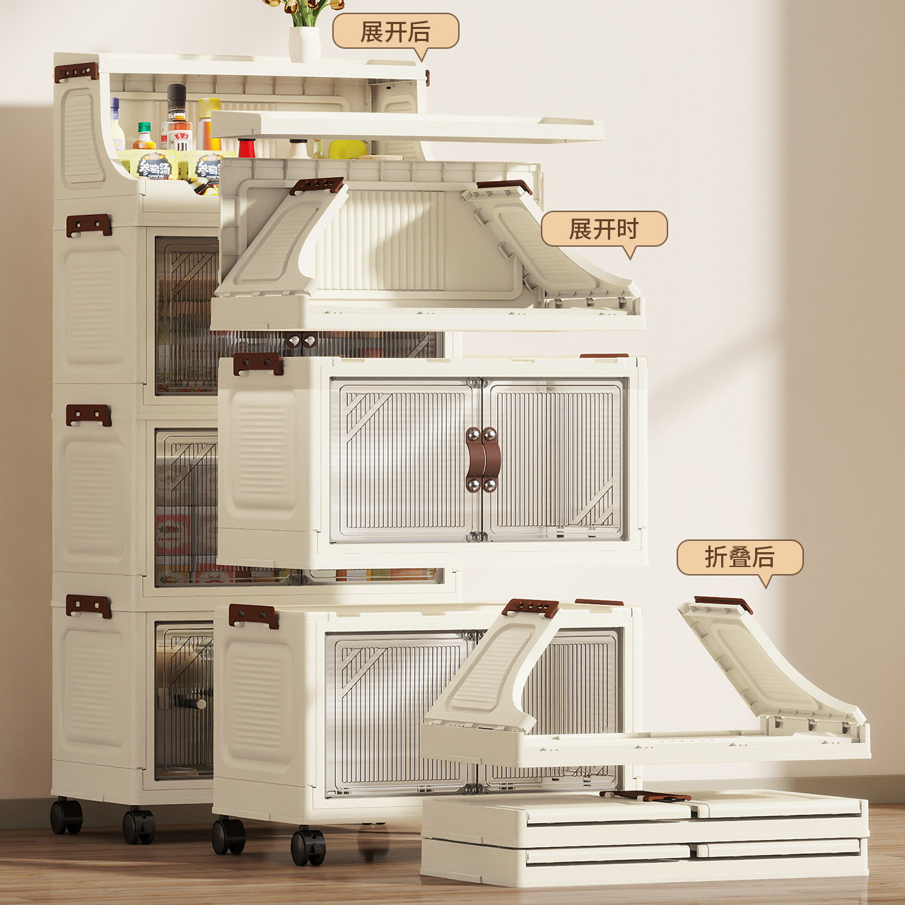 折叠收纳柜厨房置物架多层家用储物柜子客厅零食玩具免安装整理架
