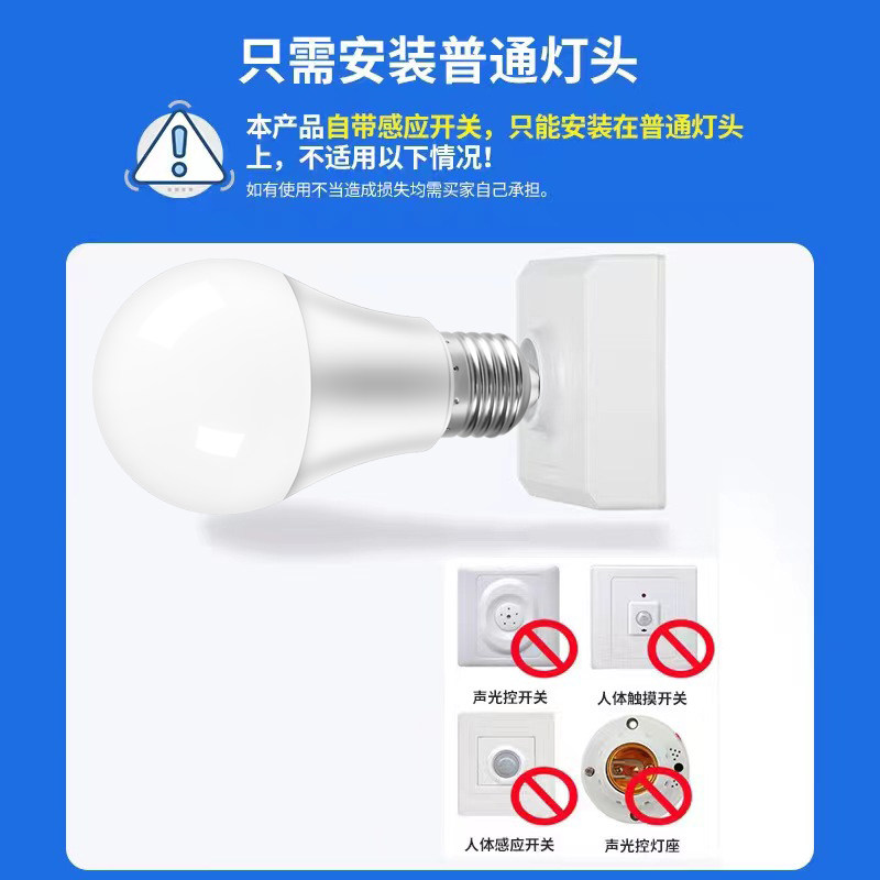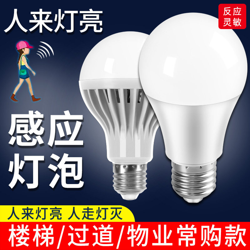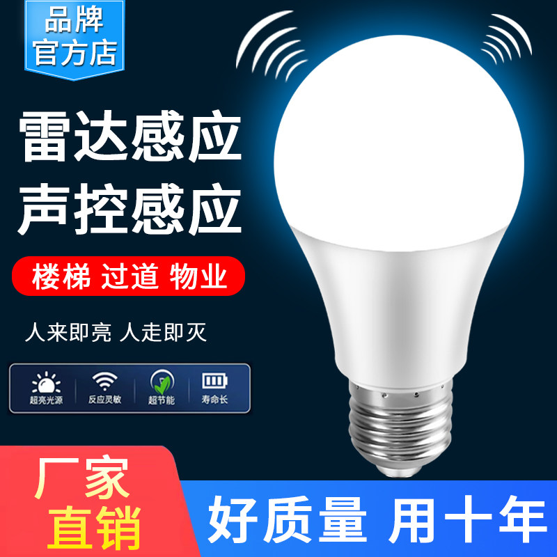 led雷达感应灯智能声光控节能灯泡e27螺口家用楼道过道智能小夜灯