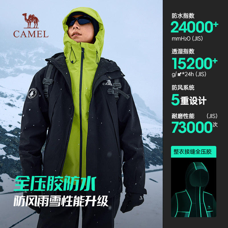 骆驼男装冲锋衣男户外夹克外套三合一三防羽绒内胆徒步登山透气冬