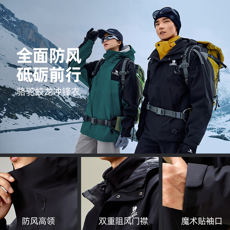 王俊凯同款骆驼蛟龙冲锋衣男女三合一外套秋冬款户外防水登山夹克