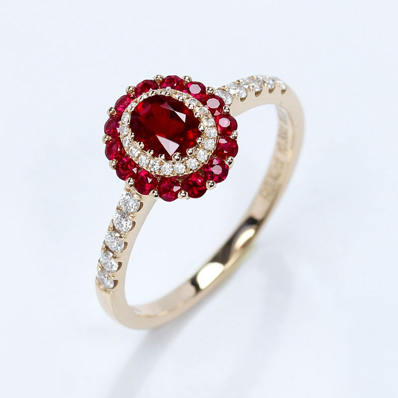 18K玫瑰金天然鸽血红宝石太阳花戒指 彩金正红色群镶钻石指环女款
