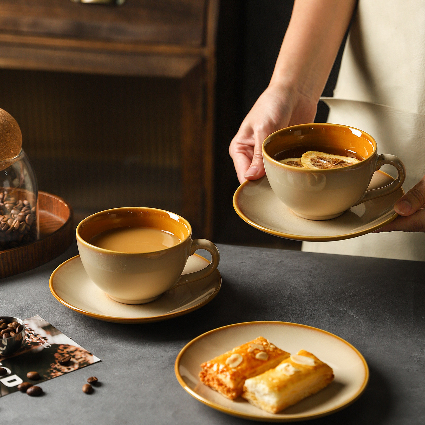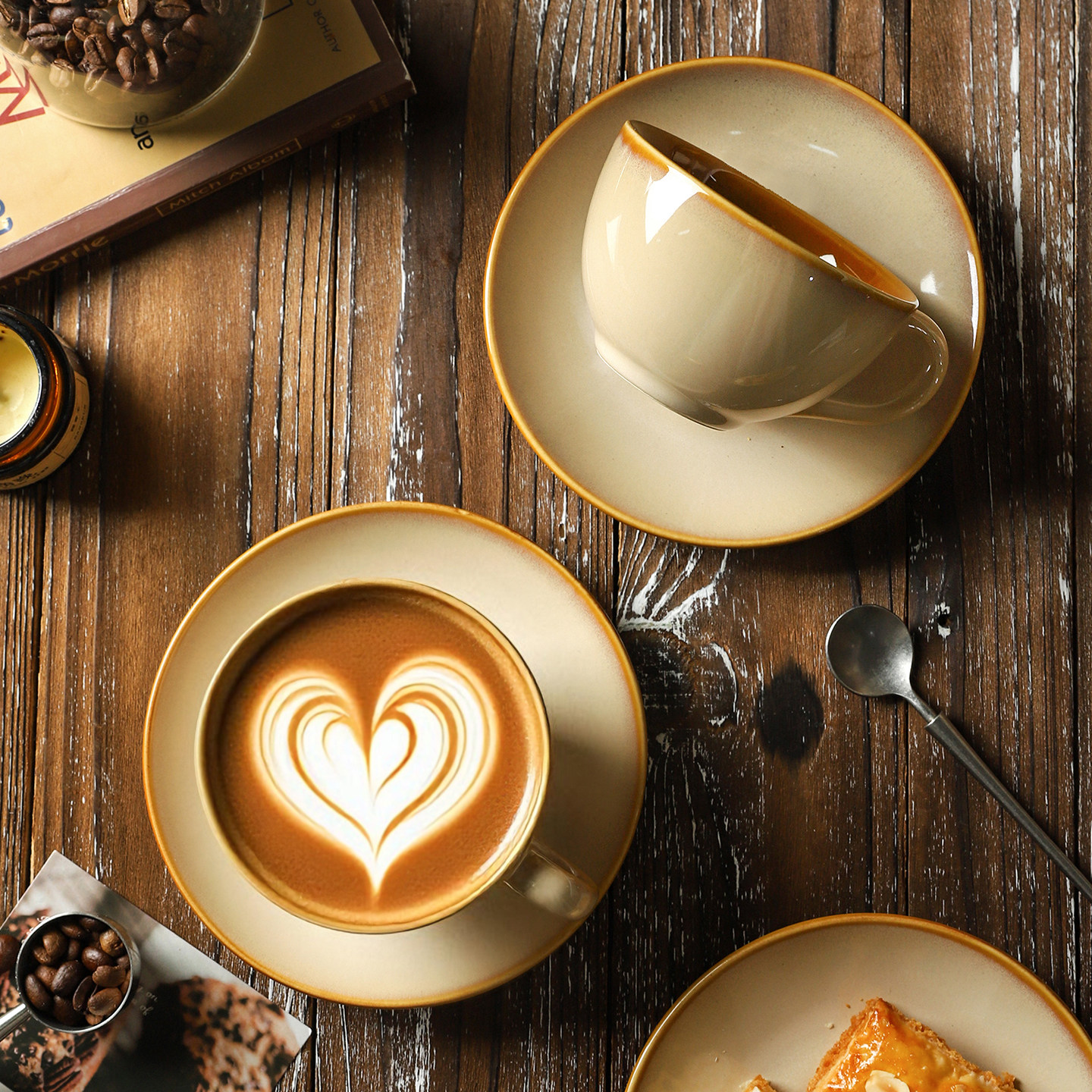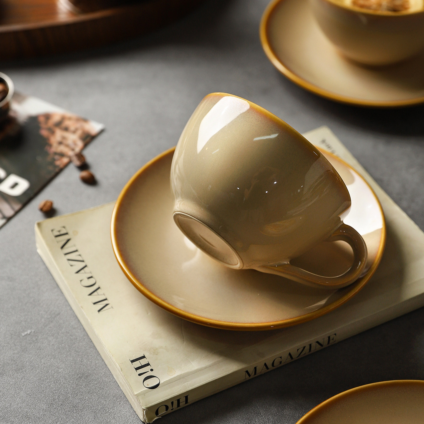 舍里复古窑变咖啡杯碟套装家用下午茶陶瓷拉花杯高级感轻奢马克杯