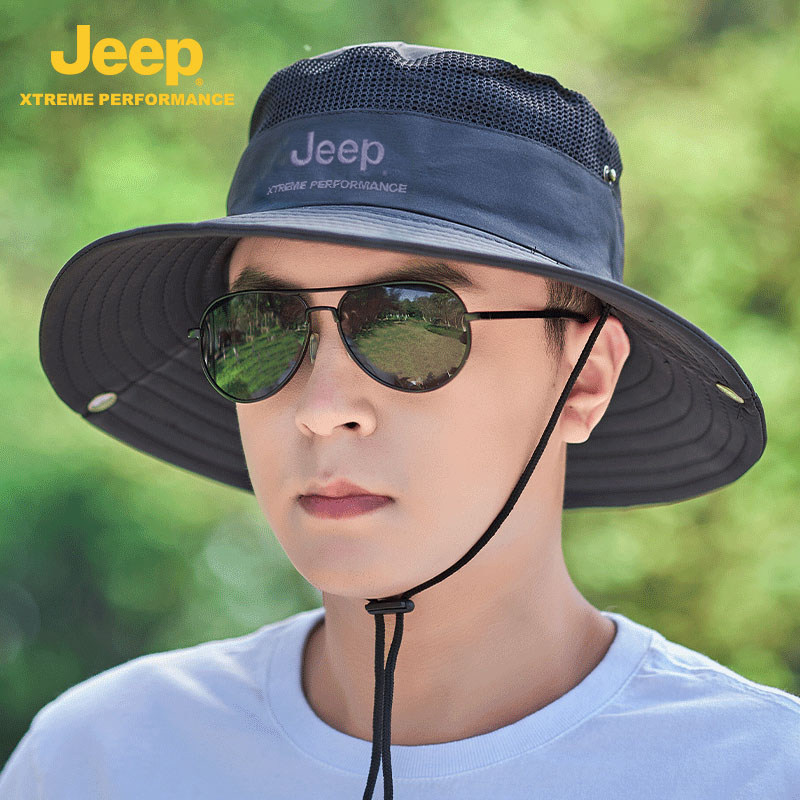 jeep吉普帽子男士夏天遮阳户外垂钓透气防晒帽男渔夫帽钓鱼太阳帽