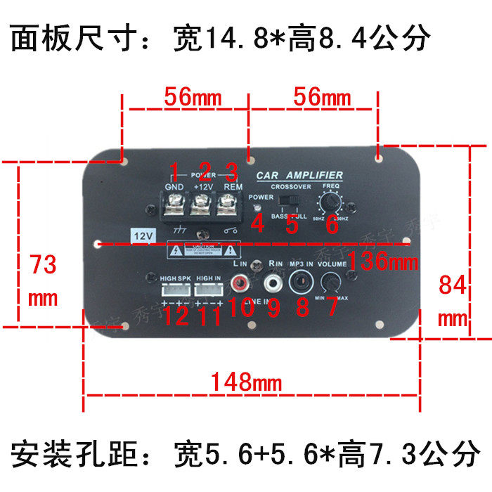 13D02方形纯低音12V功放板大功率对管主机板8寸10寸车载低音炮芯