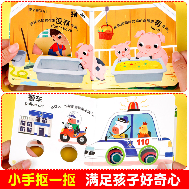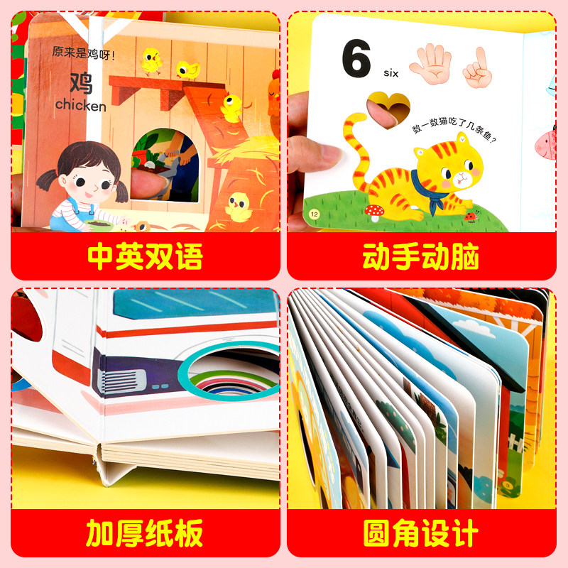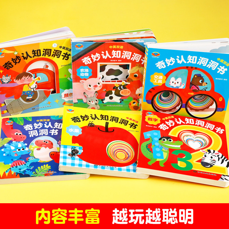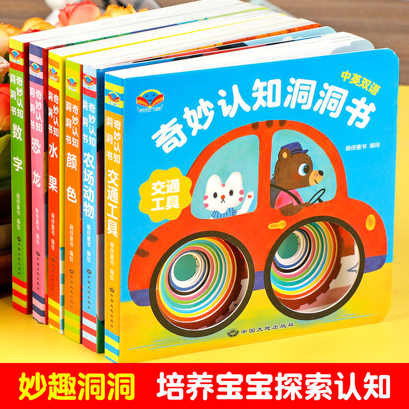 0-6岁宝宝早教洞洞书中英双语婴儿早教宝宝绘本故事书0-1-2-3-4-5-6岁幼儿园启蒙认知早教书幼儿交通工具识字幼儿益智启蒙玩具书