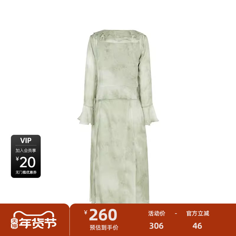 sdeer圣迪奥女装秋田园风荷叶边晕染吊带裙套装S243Z1405