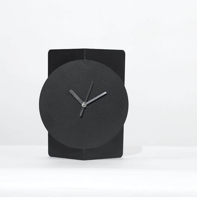 现代极简约诧寂风黑色金属哑光磨砂质感几何装饰闹钟座钟摆件个性