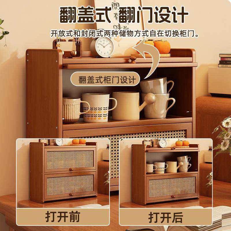 可移动桌面置物架仿藤编翻门家用收纳柜多层杯架餐边柜置物架拉车套罩