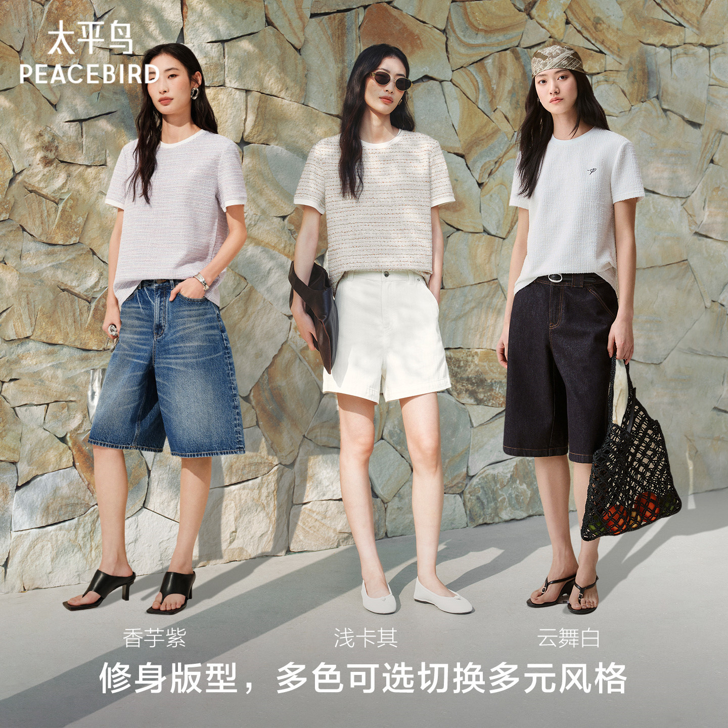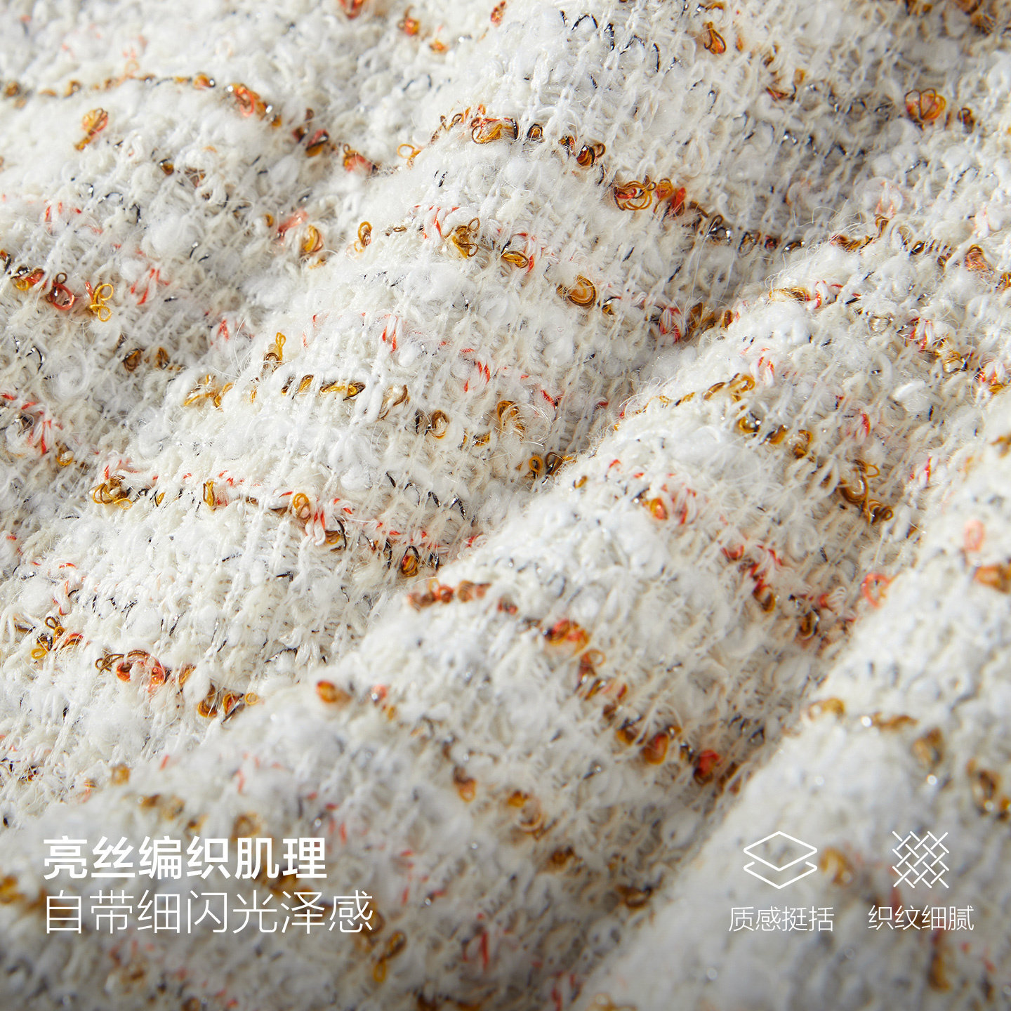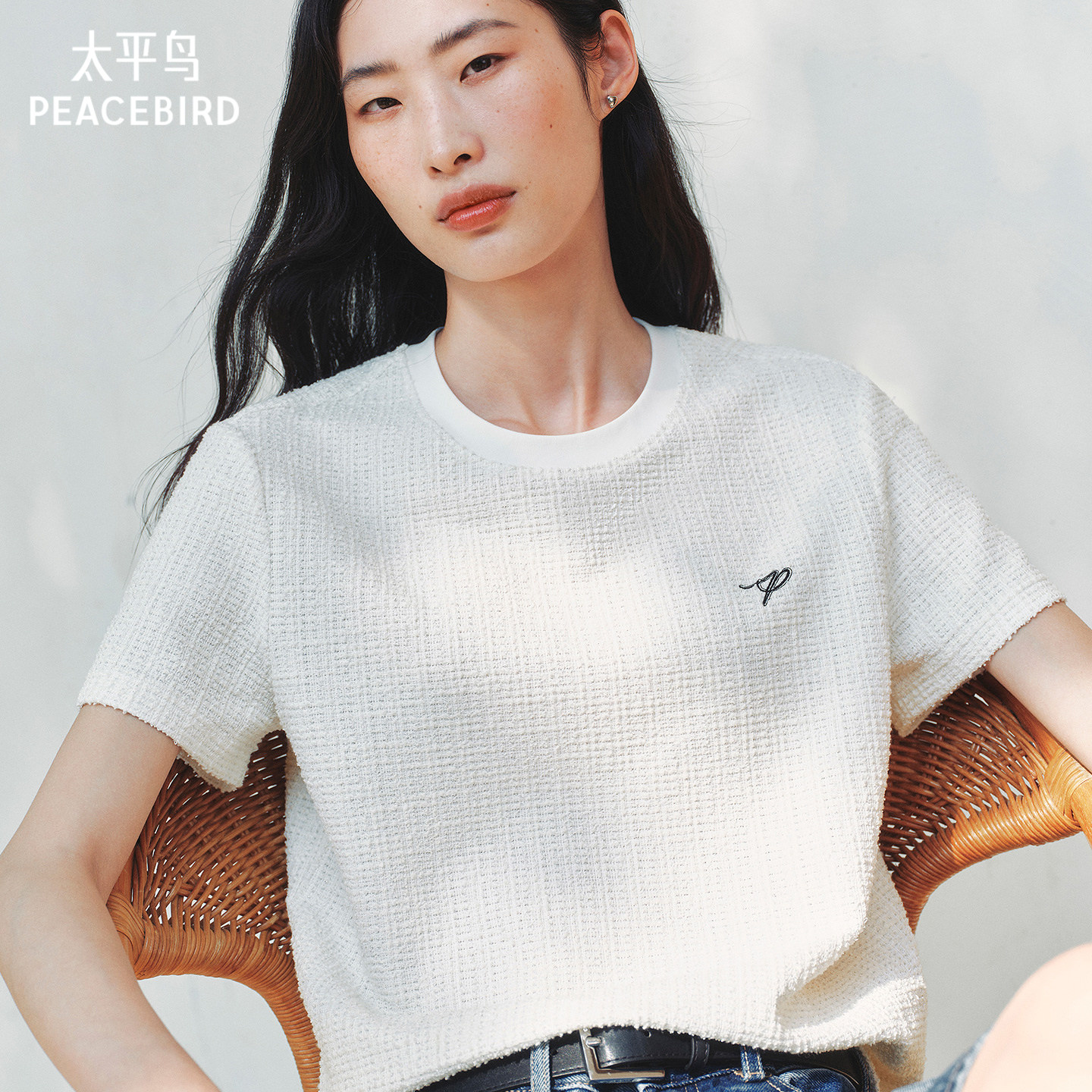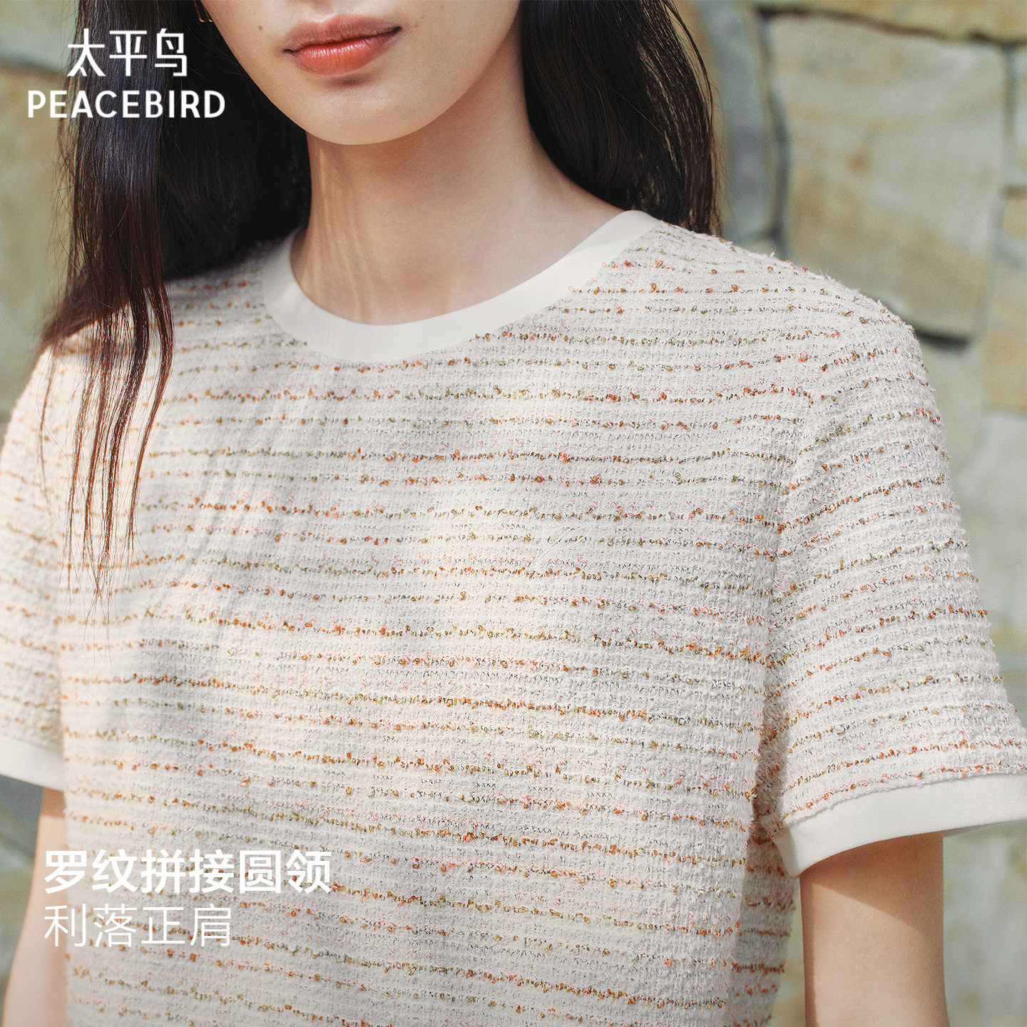 太平鸟 圆领优雅小香风短袖T恤26夏季新款撞色亮丝编织肌理感上衣