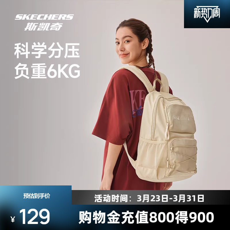 斯凯奇双肩包大容量简约旅行背包开学季百搭大学生运动休闲书包