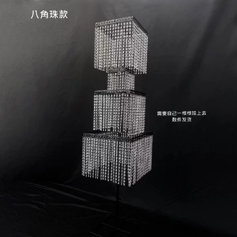 创意新款婚礼方形八角水晶流苏路引亚克力珠帘婚庆铁艺摆件装饰