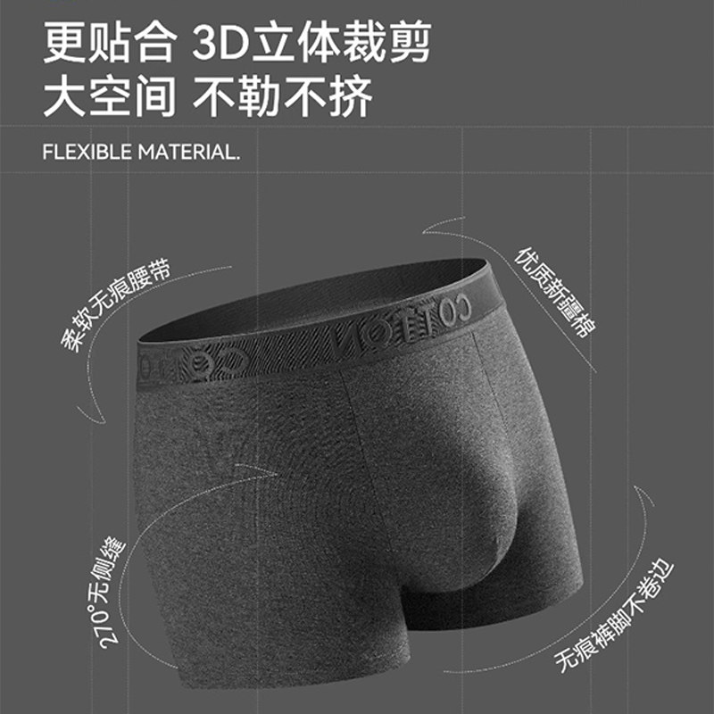 日本无印优品纯棉内裤男新疆长绒棉无缝全棉纯色透气平角裤中腰