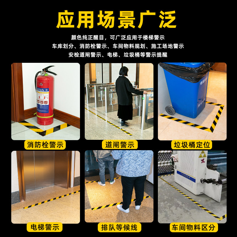 PVC警示胶带安全斑马线黑黄警戒带彩色水电标识隔离车间划线加厚耐磨地板面消防地标线贴纸定位地膜胶布