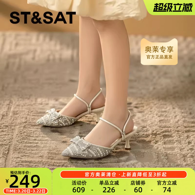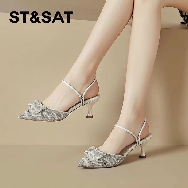 星期六优雅通勤时装凉鞋2023夏季新款细高跟尖头女单鞋SS32114547