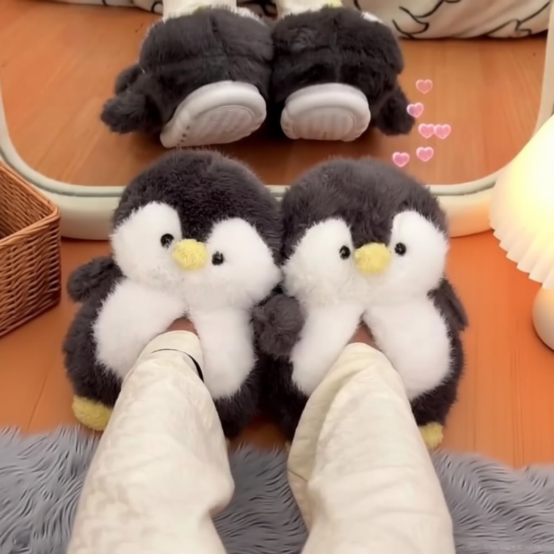 新款小企鹅拖鞋女孩居家棉鞋拖可爱儿童亲子鞋冬天保暖鞋防滑厚底