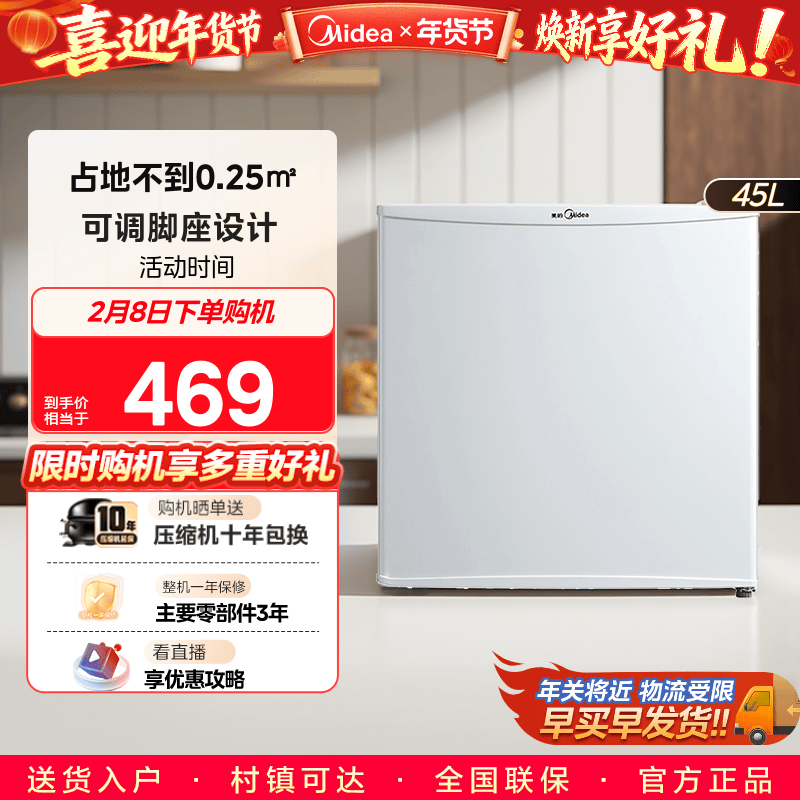 美的45升白色单门冷藏家用节能租房宿舍办公母婴美妆客厅冰箱