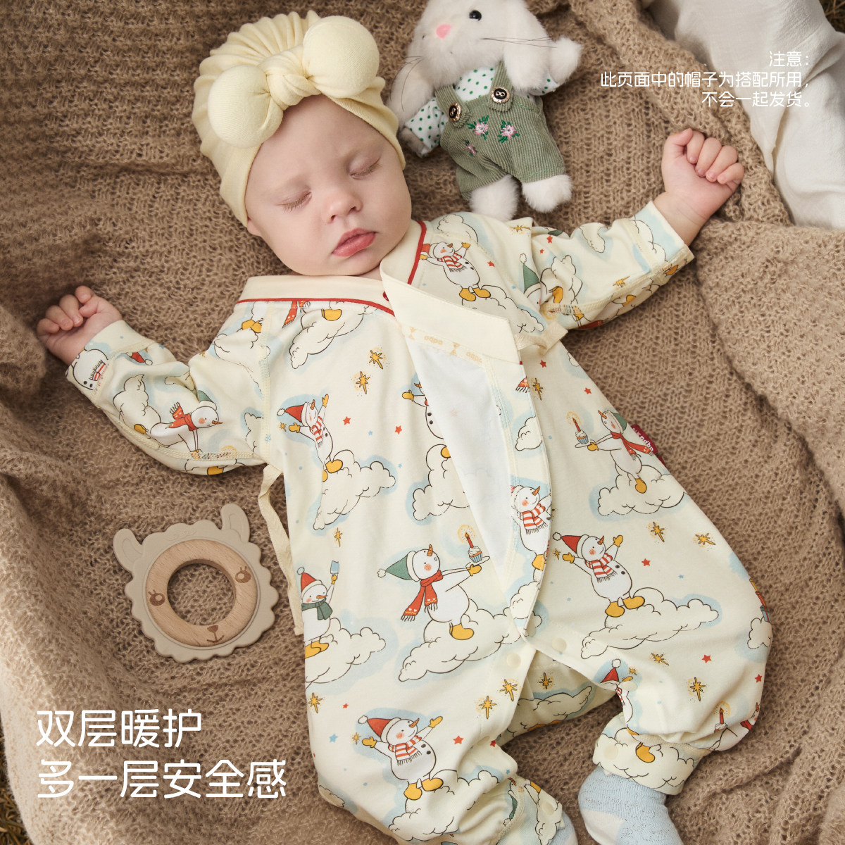 婧麒新生儿婴儿衣服秋冬夹棉满月纯棉初生宝宝秋装连体衣a类爬服