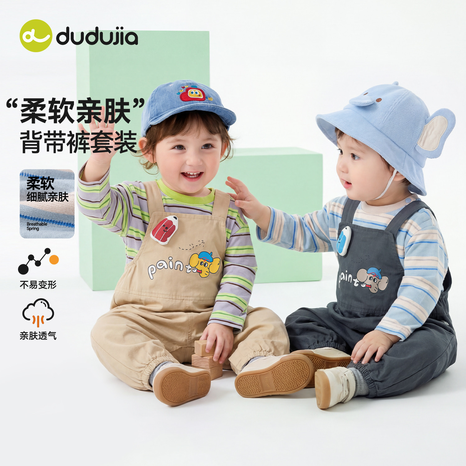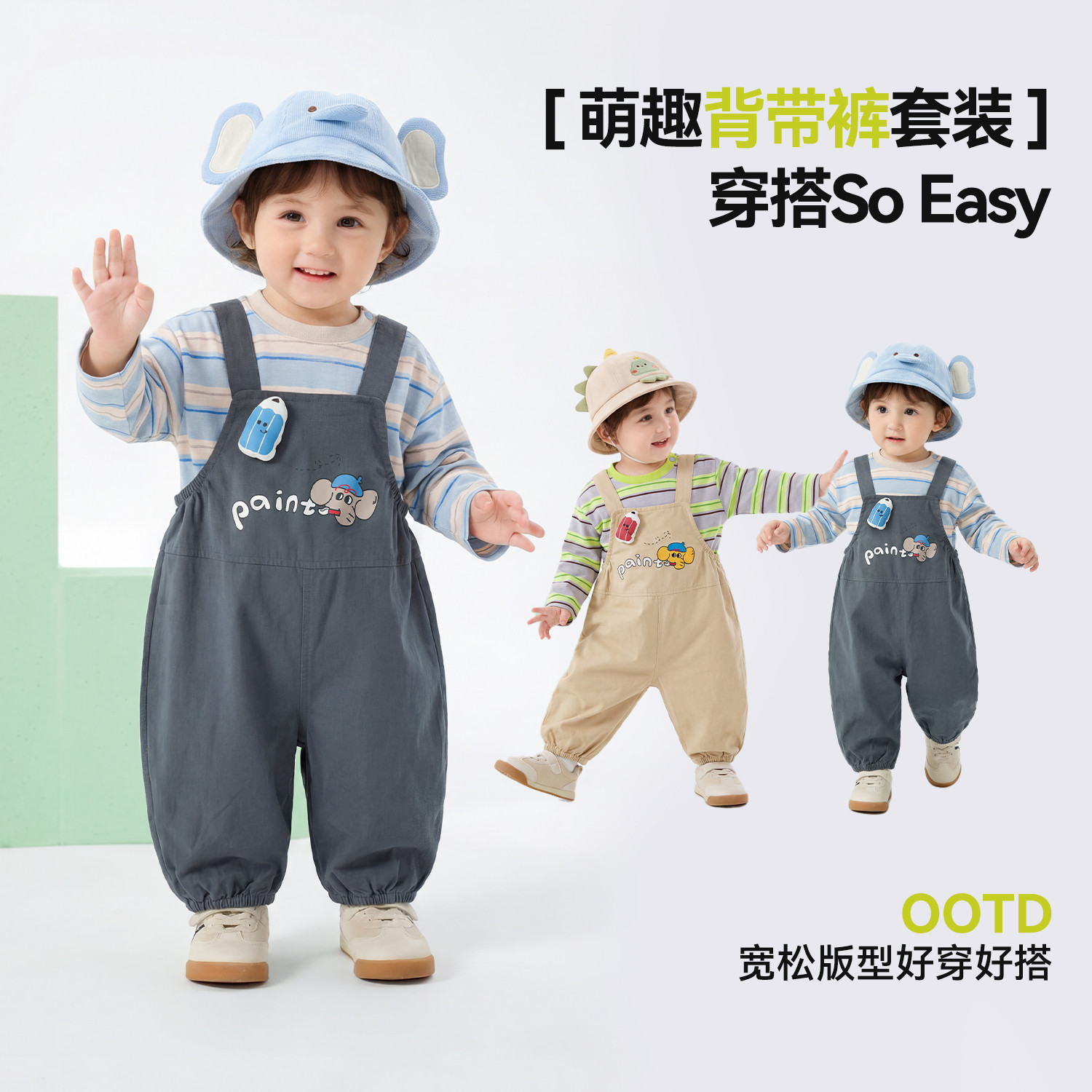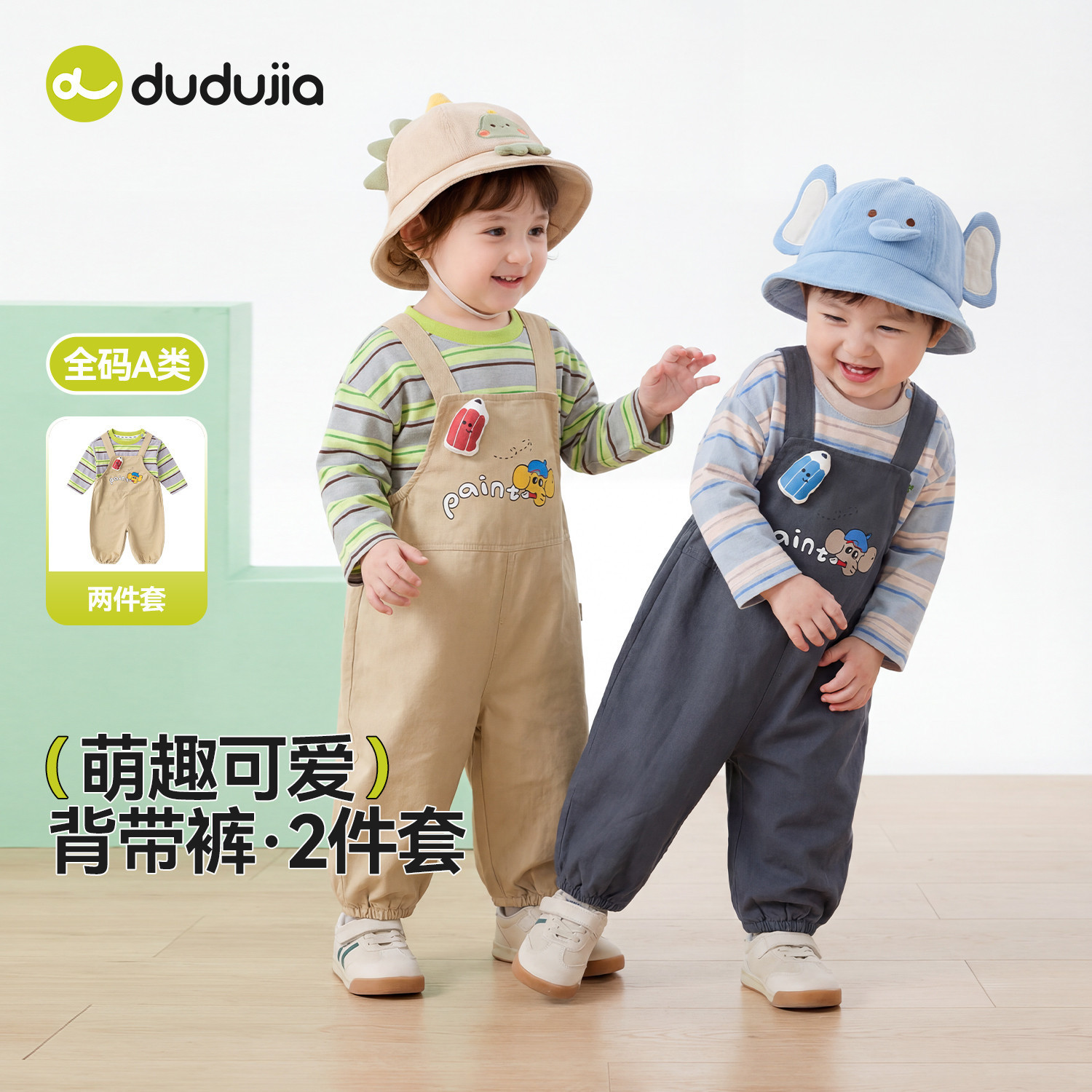 嘟嘟家男童套装儿童2026春季新款卡通可爱春装宝宝背带裤休闲童装