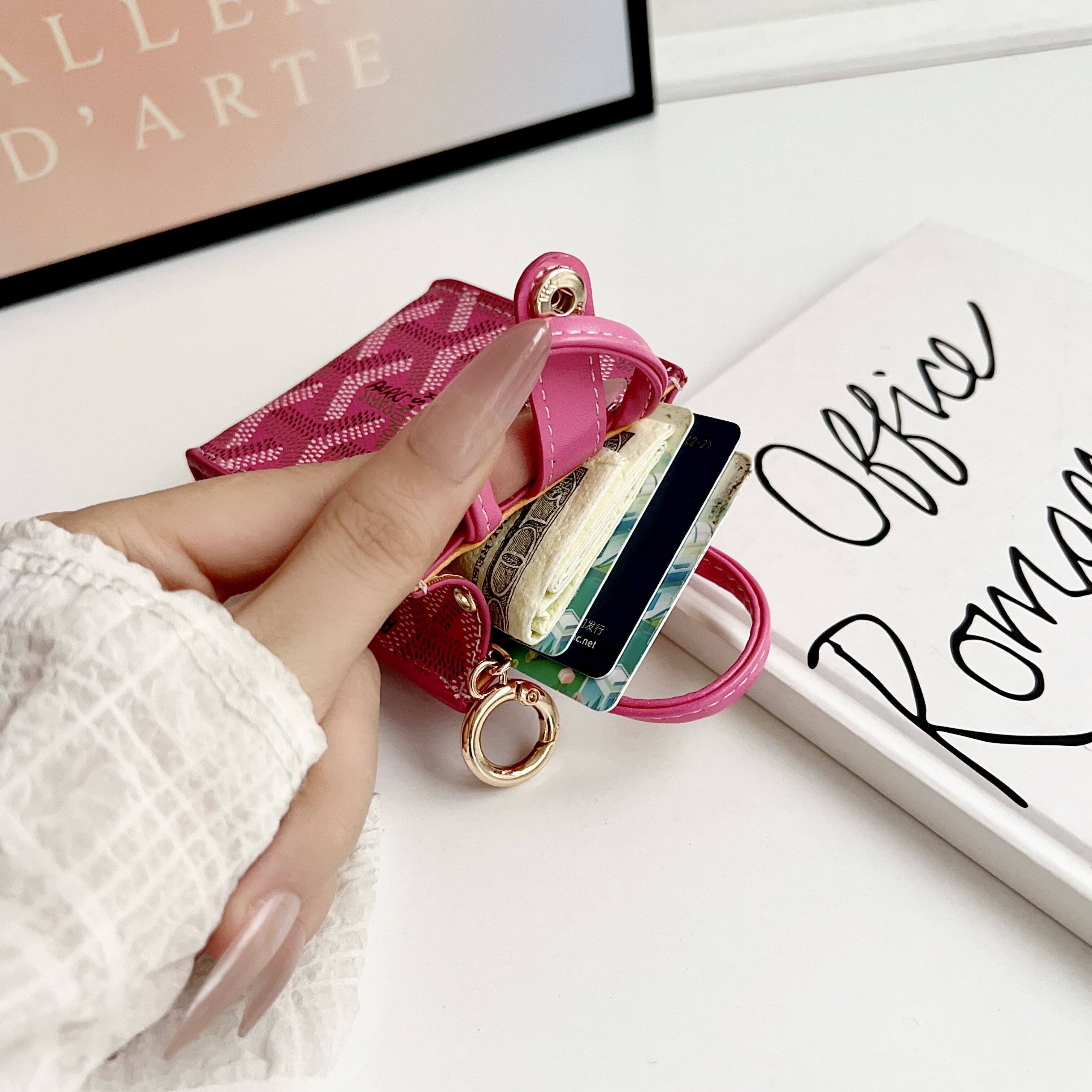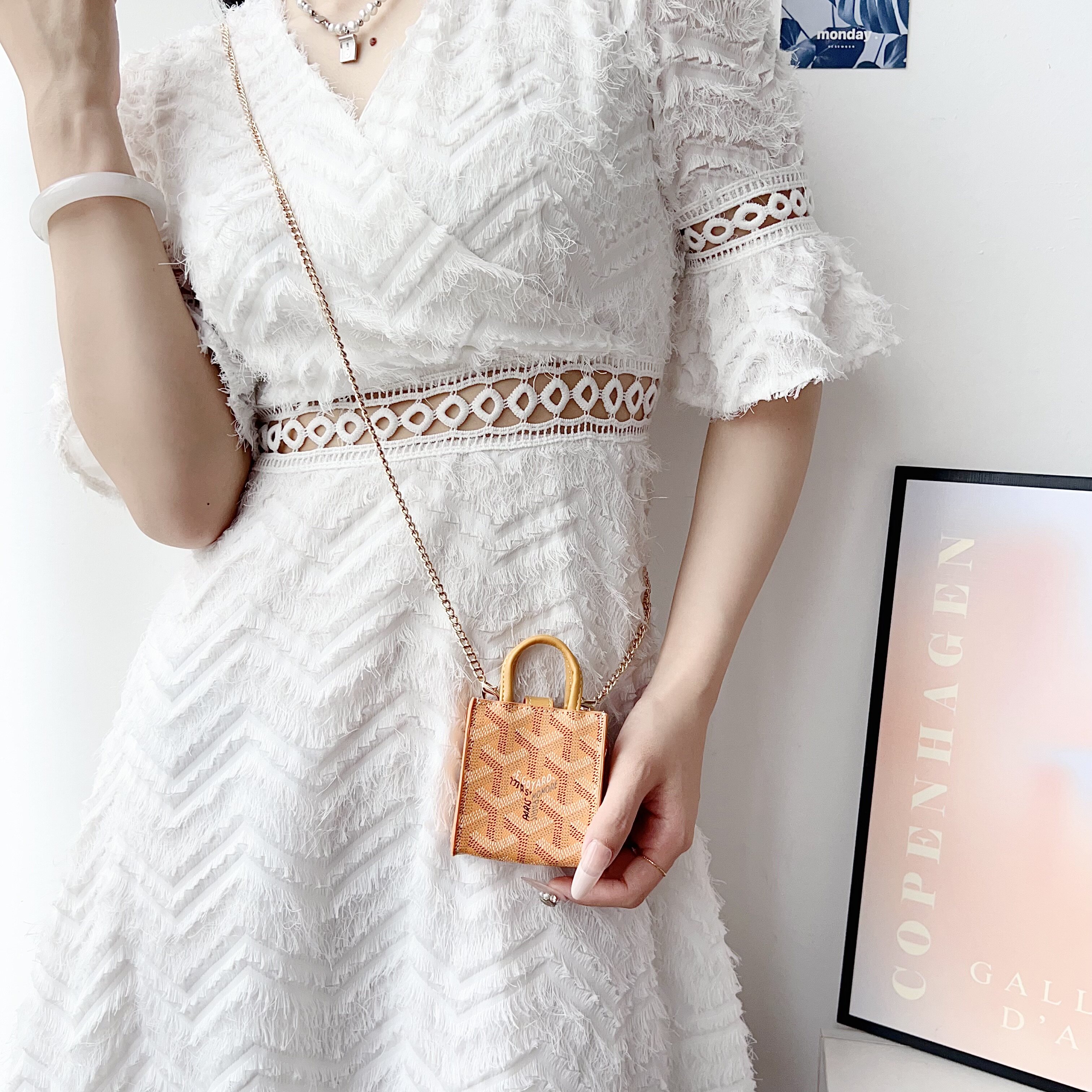 新款潮牌狗牙斜挎零钱手提卡包适用苹果无线蓝牙耳机AirPods pro二代AirPods 1/2/3/4代高档大牌皮质华为挂绳