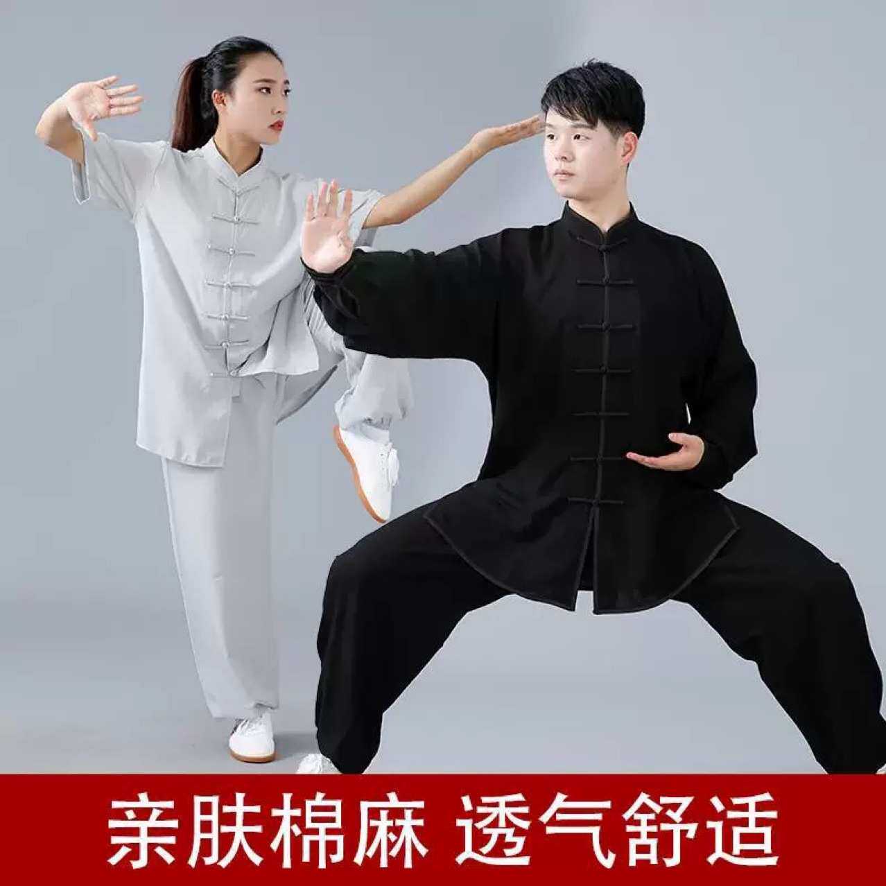 太极服女练功服男春夏新款棉麻太极拳服短袖武术服团队表演服套装