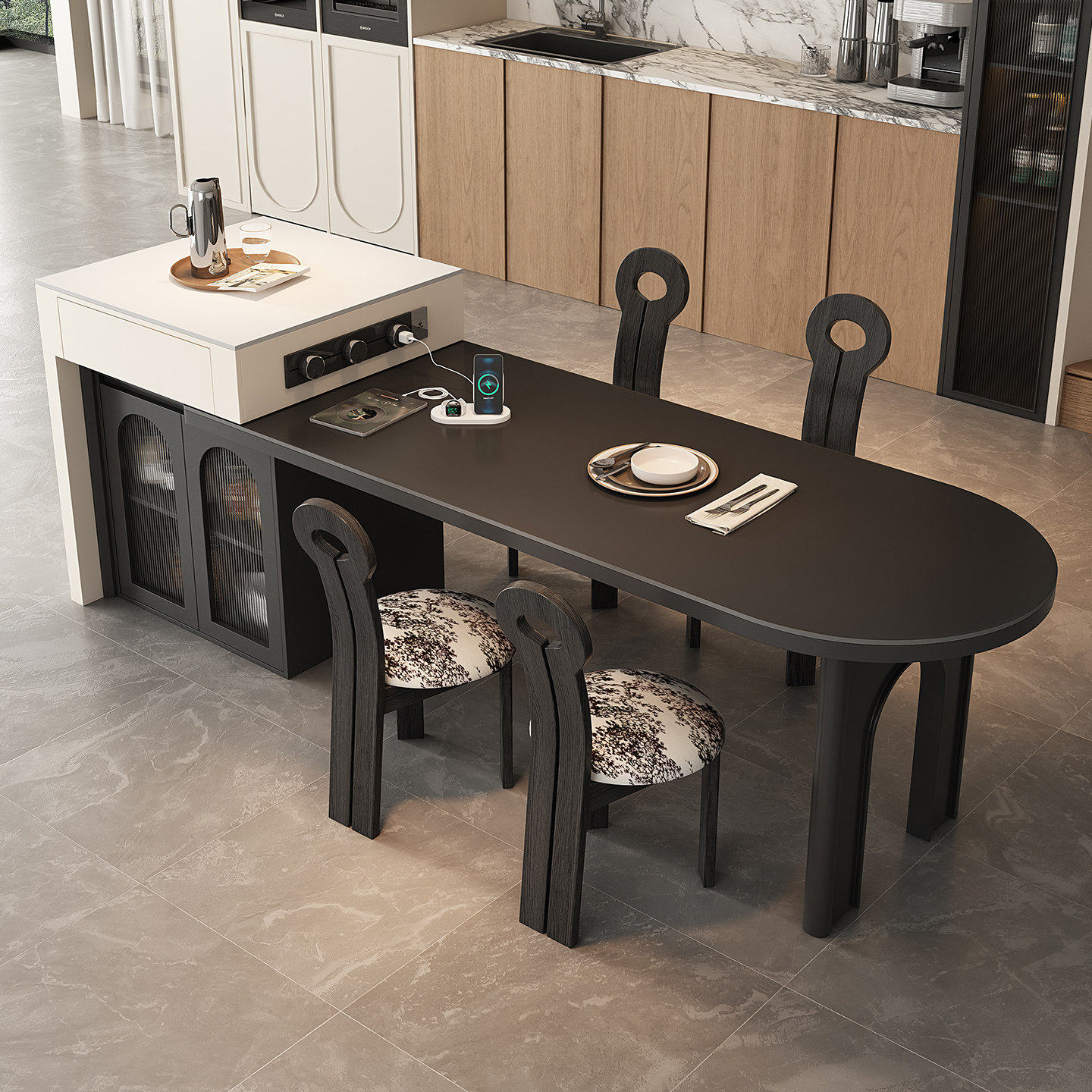 意式极简弧形倒台小户型岩板岛台餐桌一体家用可伸缩多功能导台