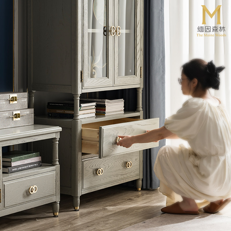 灰色储物柜客厅靠墙高级灰边柜书柜餐边柜轻奢酒柜实木灰色美式