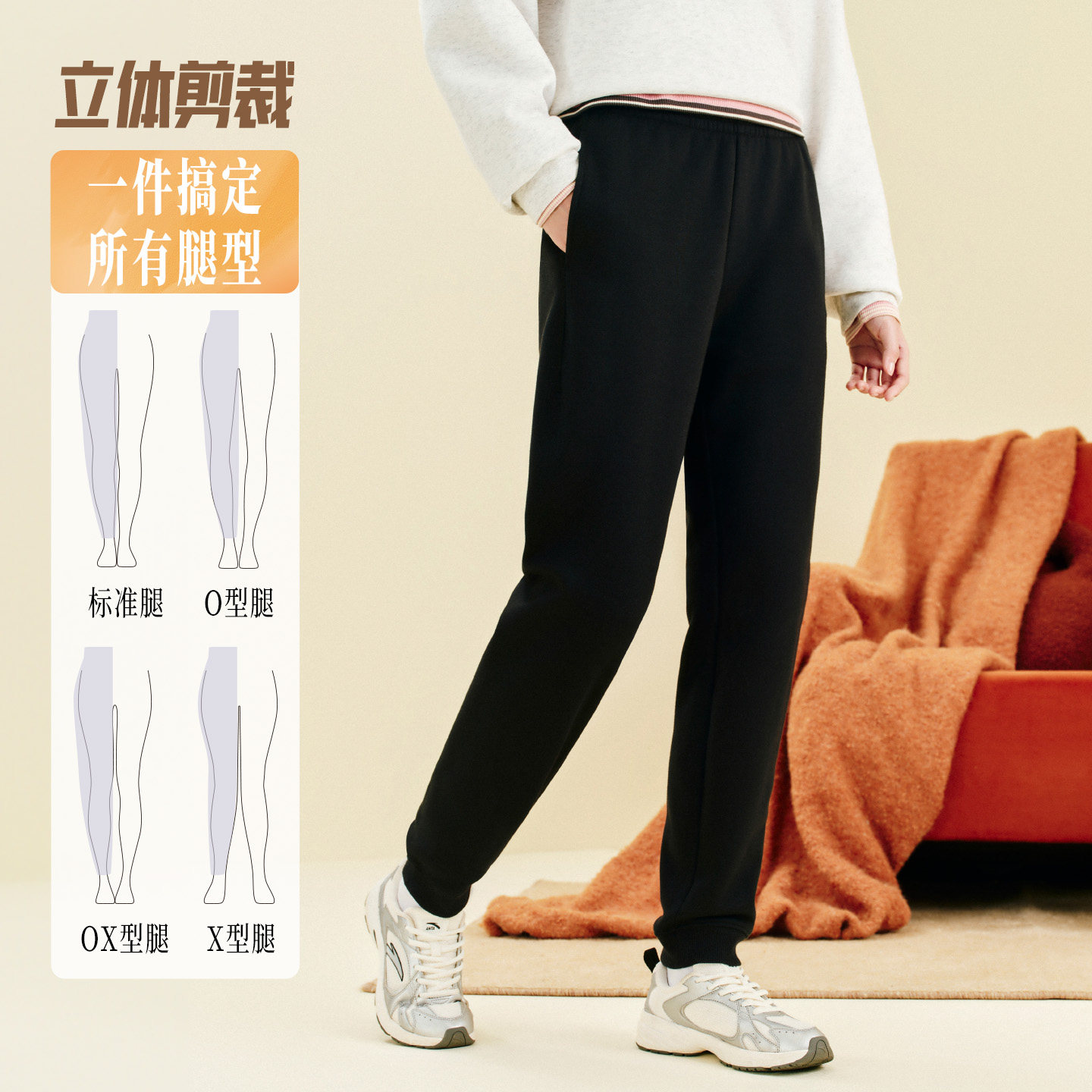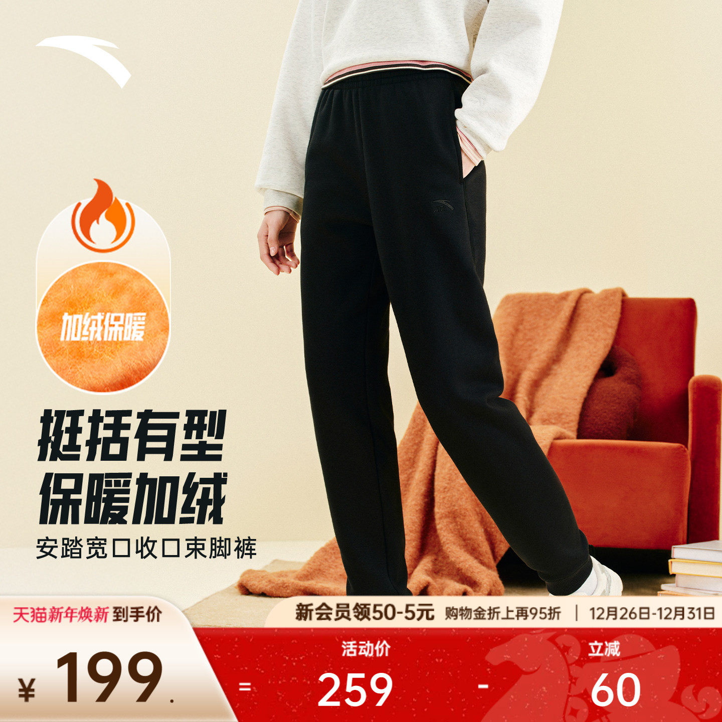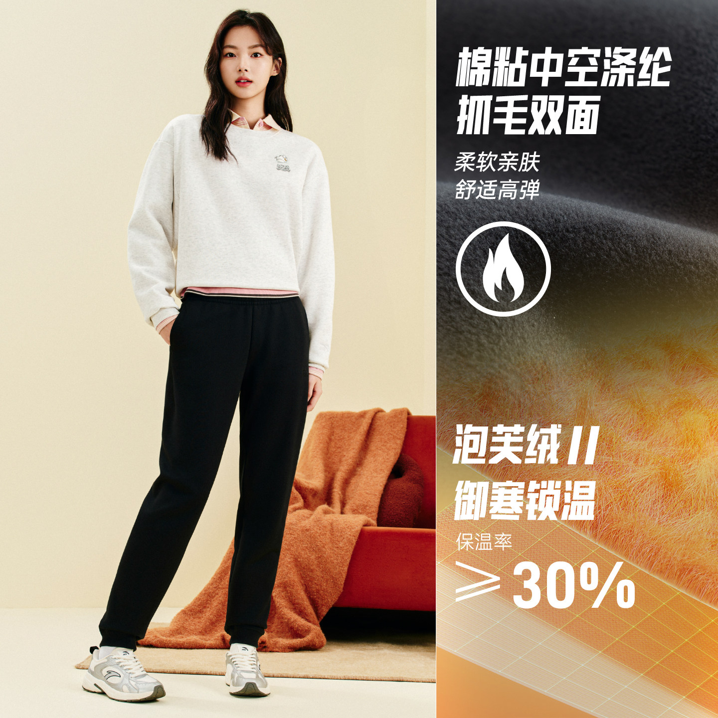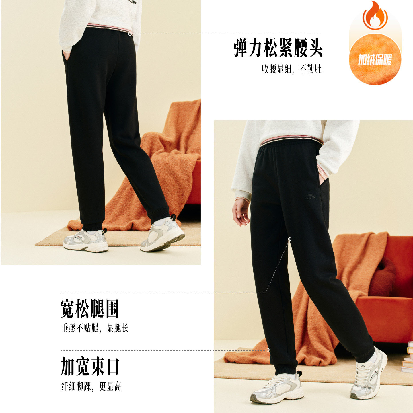 安踏奶芙裤丨运动长裤女裤冬季加绒黑色针织裤休闲跑步收口卫裤子