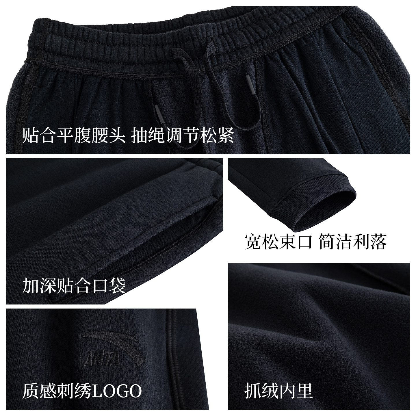 安踏运动卫裤女冬季新款加绒针织束脚裤黑色休闲长裤子162548302N